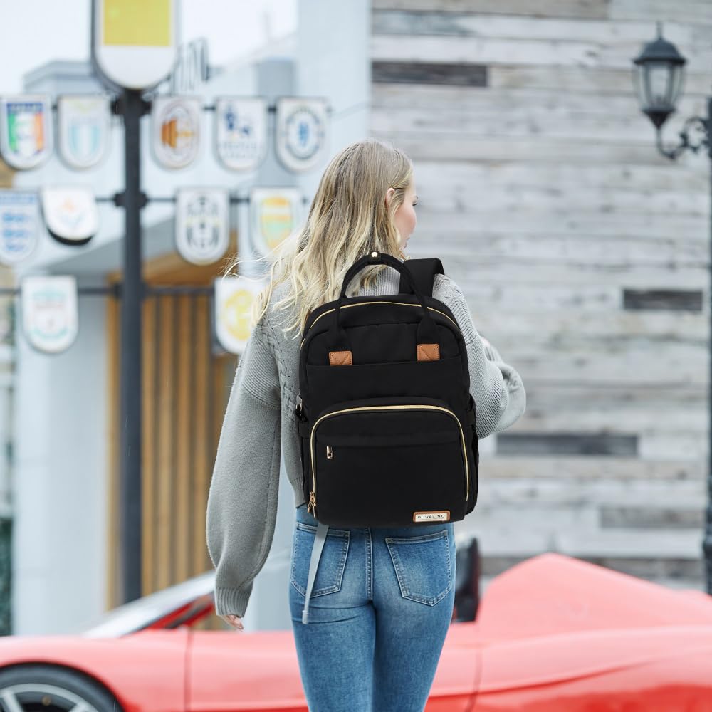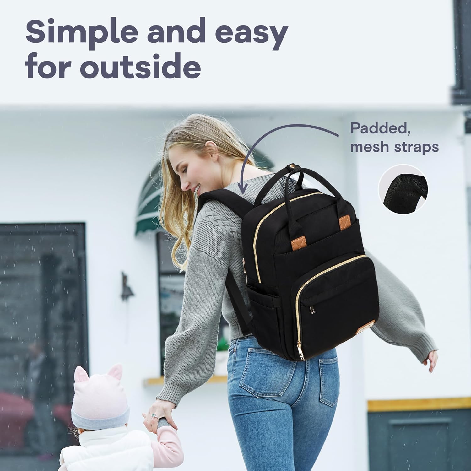 RUVALINO Diaper Bag Backpack-Multifunction Baby Travel Bag, Insulated Bottle Holders & Large Capacity, Waterproof, Deep Black