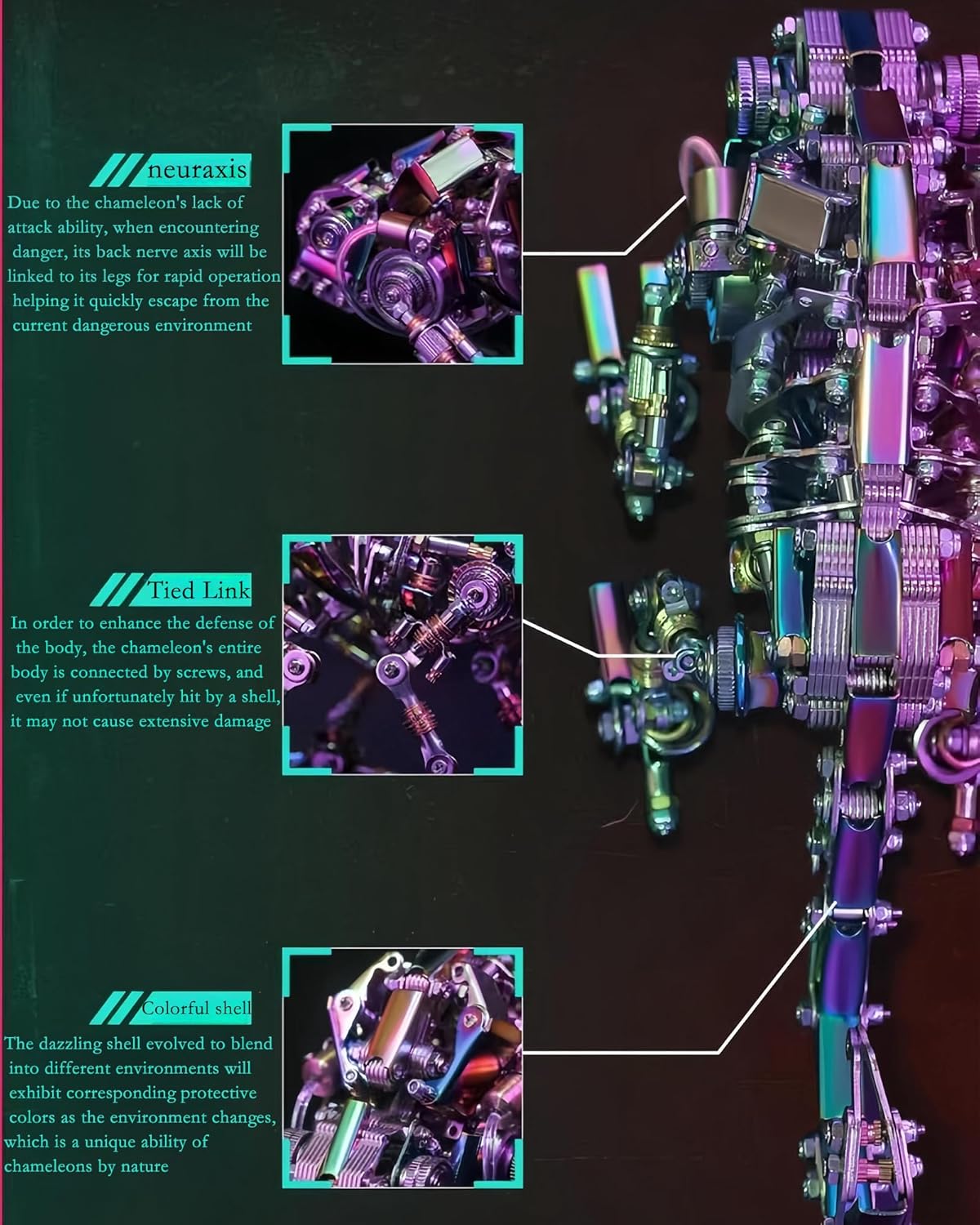 - Challenging 3D DIY Experience: This chameleon metal mechanical model is made up of 820 parts and is suitable for teenagers and adults aged 16 and above. Creating a set of metal models is very challenging, which may take over 8-12 hours, depending on your observation and patience. After hours of focused work and completing your own amazing craftsmanship, you will experience a strong sense of achievement and stress relief