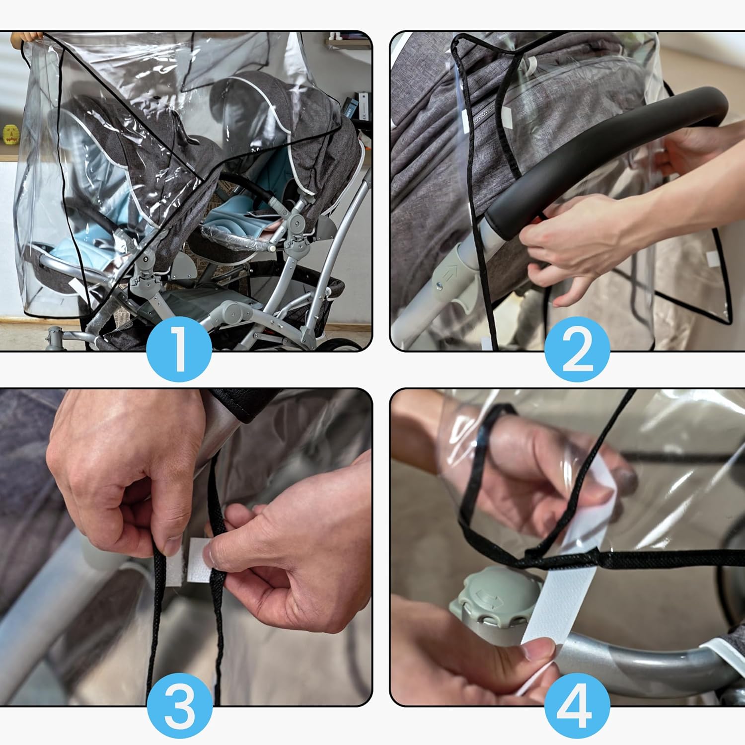- Perfect Fit: The rain cover features multiple Velcro straps to ensure a snug fit on the stroller, effectively preventing water seepage and enhancing wind resistance