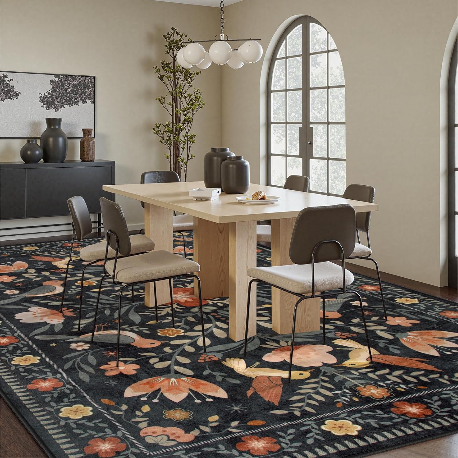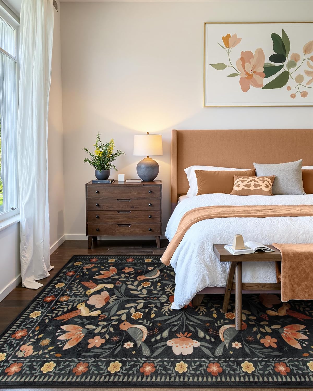 - [Bright and Elegant Design]: Featuring a beautiful bird and flower pattern with bright, vivid colors, this rug adds a touch of elegance and charm to any room, effortlessly complementing a variety of décor styles