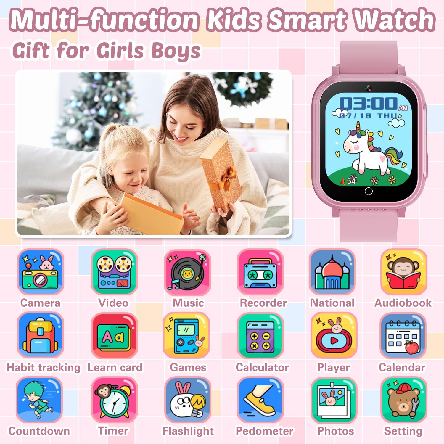Waterproof Smart Watch for Kids Gift for Girls Age 5-12 with 32 Games, Dual Camera, Habit Tracking, Music Player, Video, Alarm Clock, HD Touchscreen Kids Smart Watch Birthday Toys for 3-12 Year Old