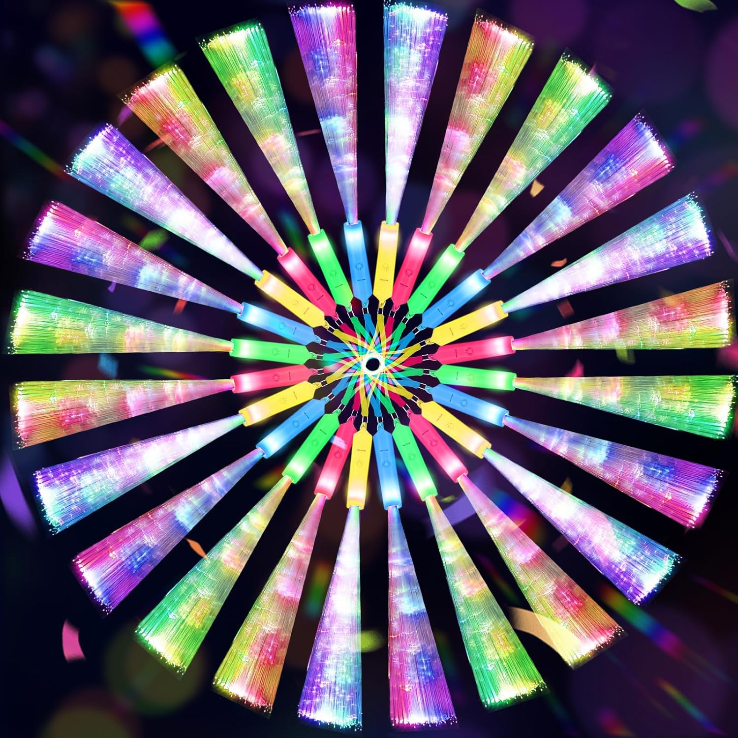 - Glow Party Essentials: Elevate your celebration with a 100 pack of neon bulk fiber optic wands. Abundant in quantity, these vibrant wands with flashing lights are perfect for both adults and kids, making them an excellent choice for glow parties or as unique favors.