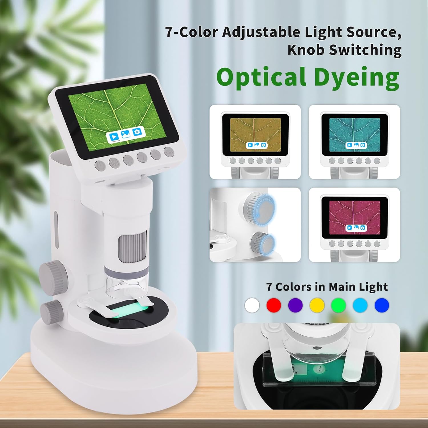- Lighting details: Button to adjust the LED light six brightness, knob to adjust the brightness of the observation window light and seven colors, can stain specimens, easy to observe transparent objects