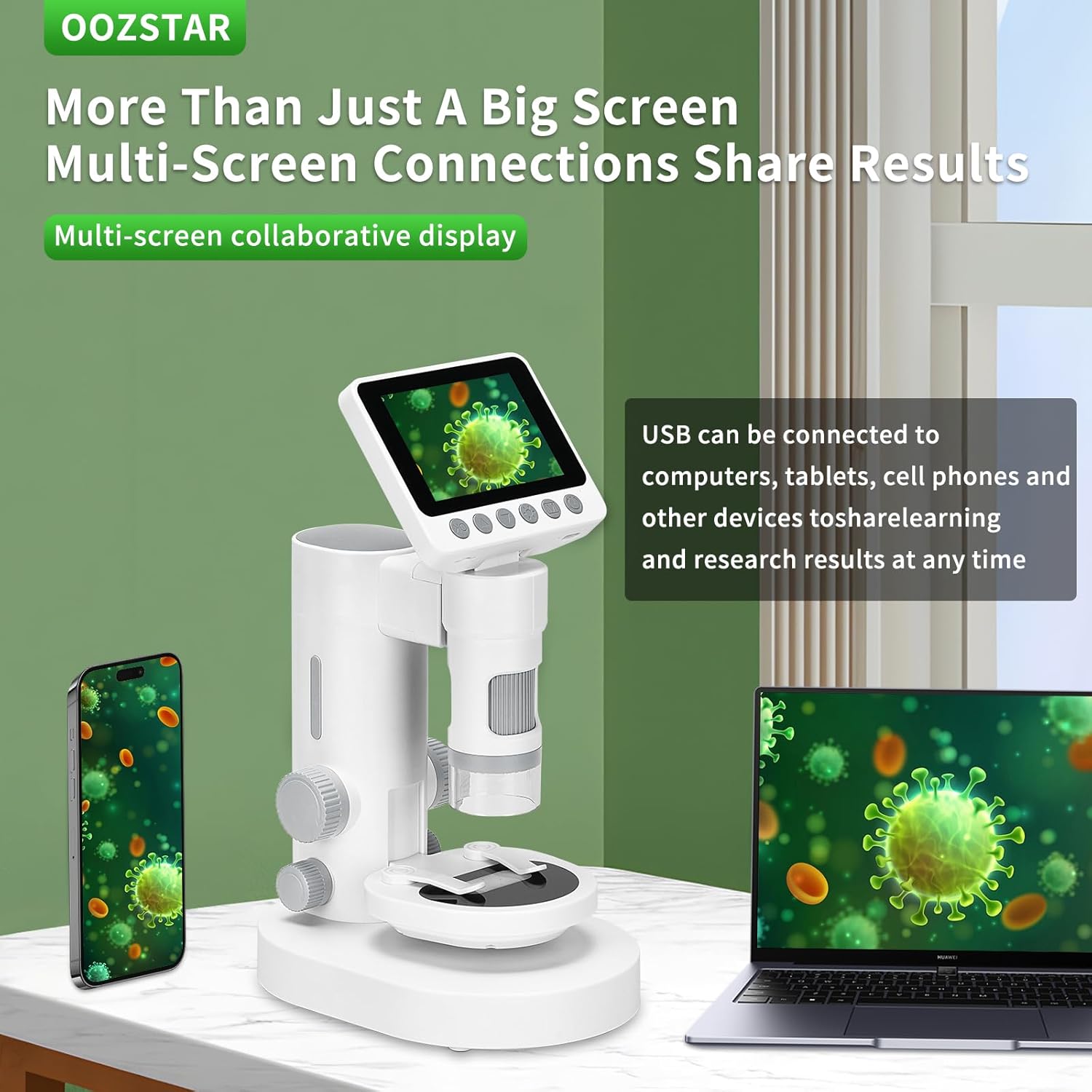 OOZSTARMicroscope for Kids, Up to 1000 X Magnification, 3.5-inch Foldable Screen, Handheld Pocket Microscope for Kids,Science Education Kits for 8-12 Year olds