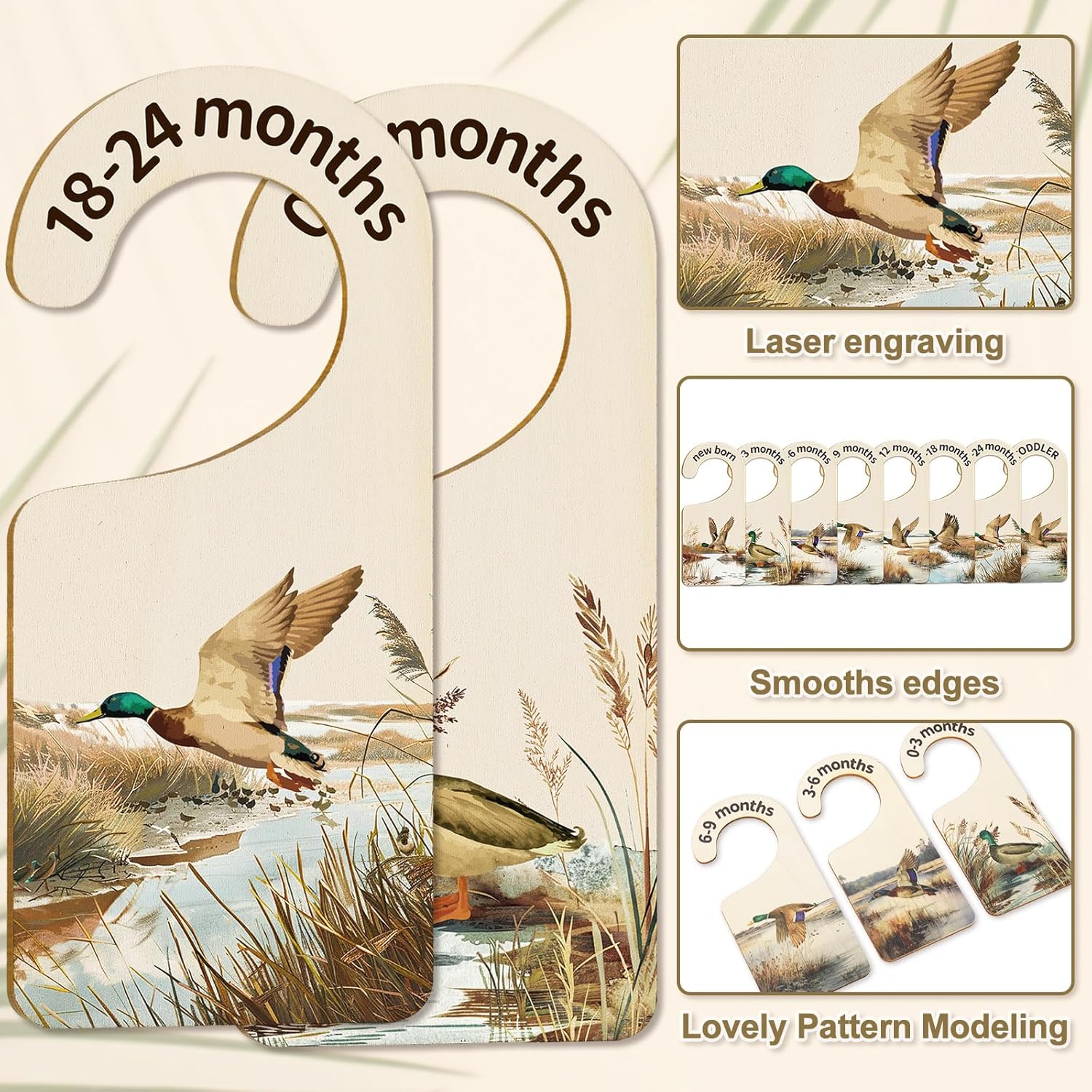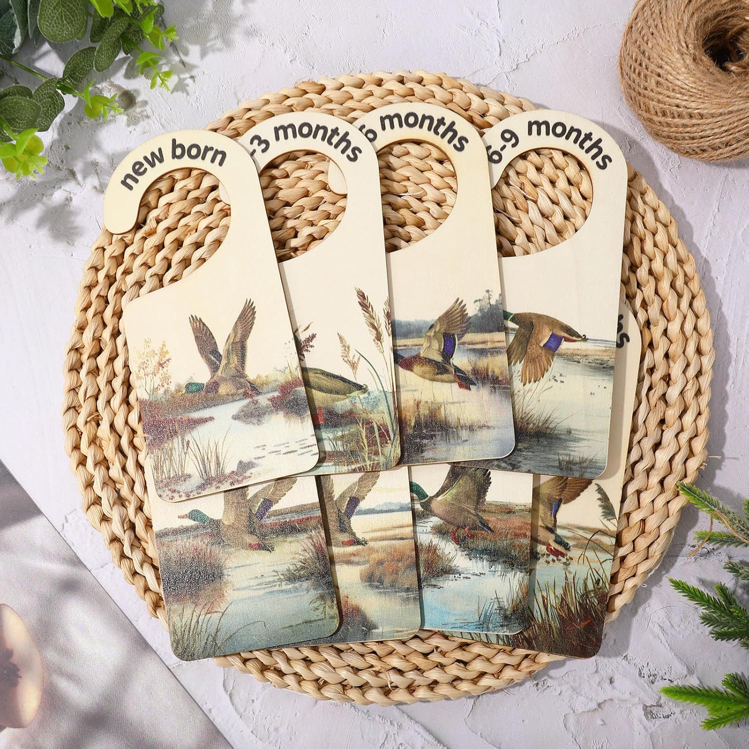 Whaline 8Pcs Baby Closet Size Dividers - Watercolor Mallard Duck Hanging Wood Organizer for Newborn to 24 Months - Thicken Wardrobe Organizer