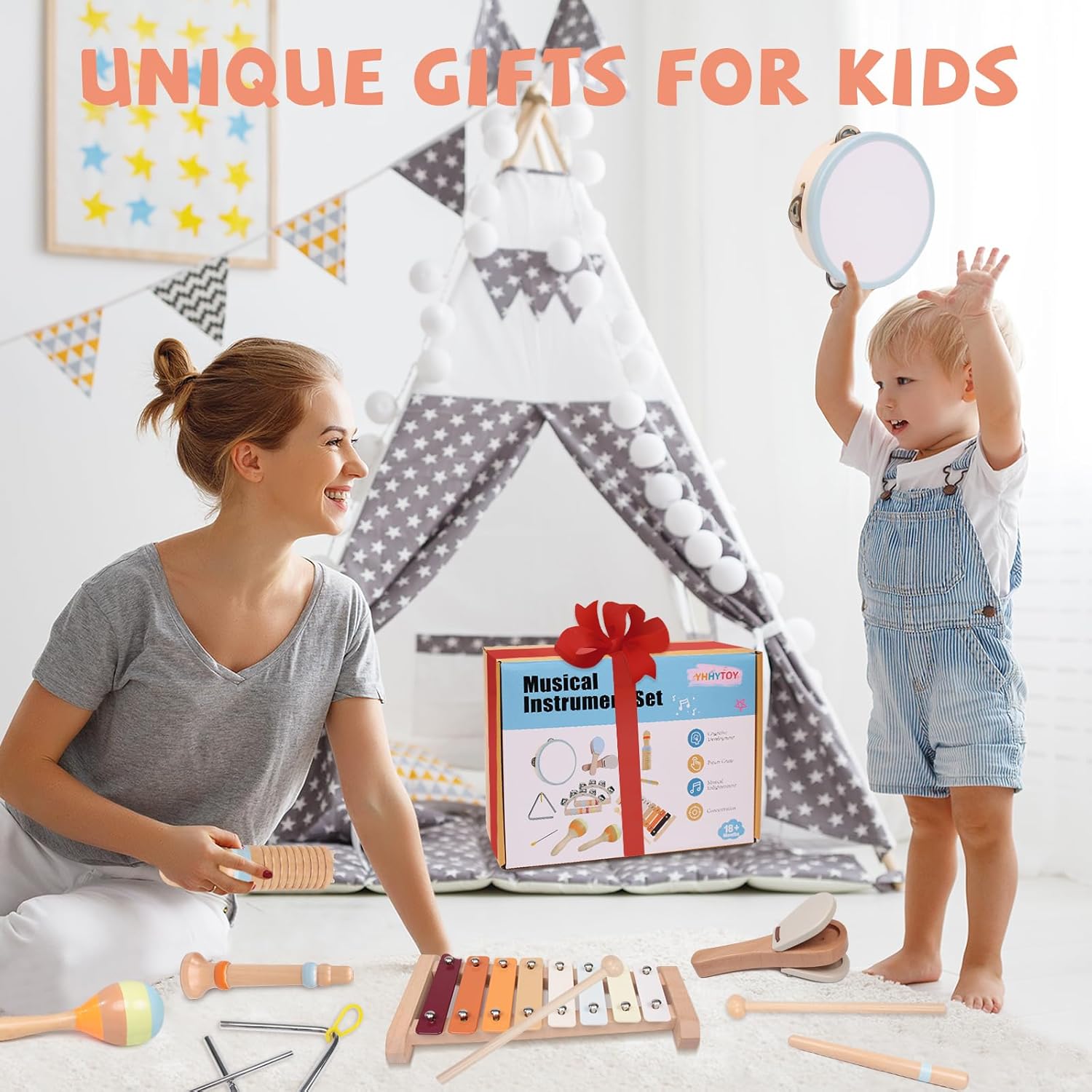 Baby Musical Instruments Set - Montessori Wooden 18 Month Old Baby Musical Toys, Toddler Percussion Instruments Xylophone Maracas Tambourine for Kids, 2 3 4 Year Old Baby Girls Boys Birthday Gifts