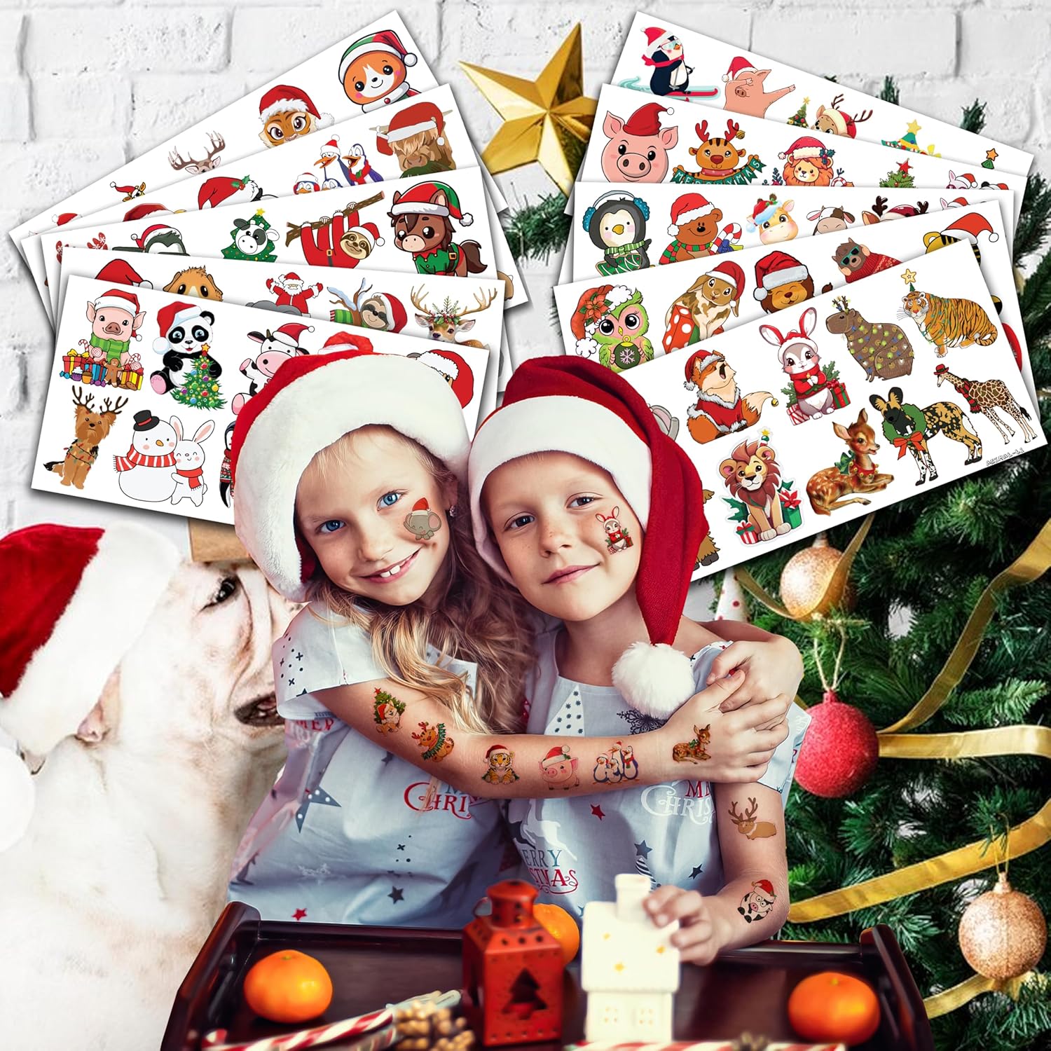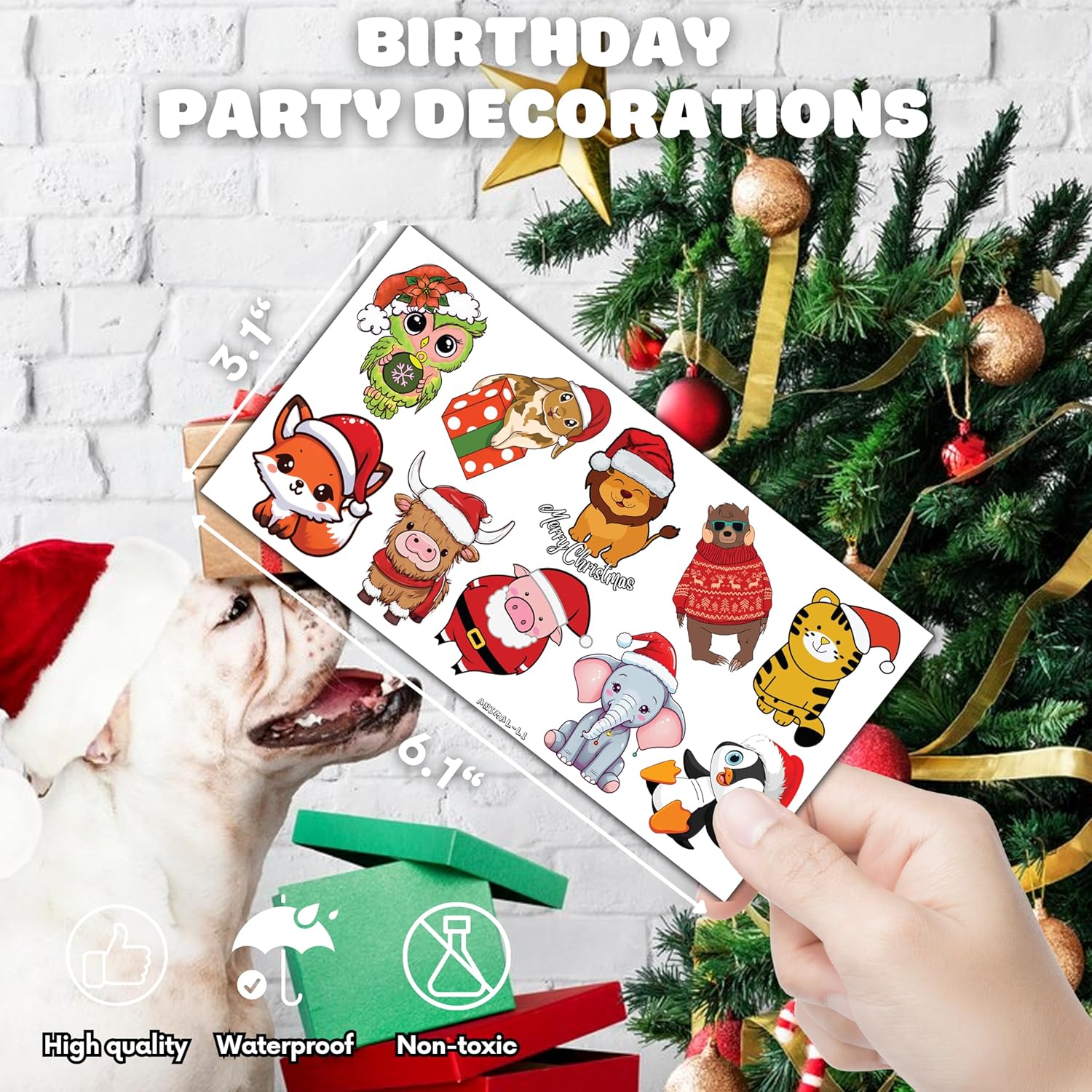 - 🐘 TATTOOS FOR CHRISTMAS ANIMAL THEMED DECORATION: CHRISTMAS ANIMAL TATTOOS for people who love Animal. Featuring 10 sheets with 100 pcs of lovely, fun and colorful design. Each sheet measures 6.1 * 3.1 inches. You can temporarily tattoo them on your body or objects such as phones, bottles, laptop…