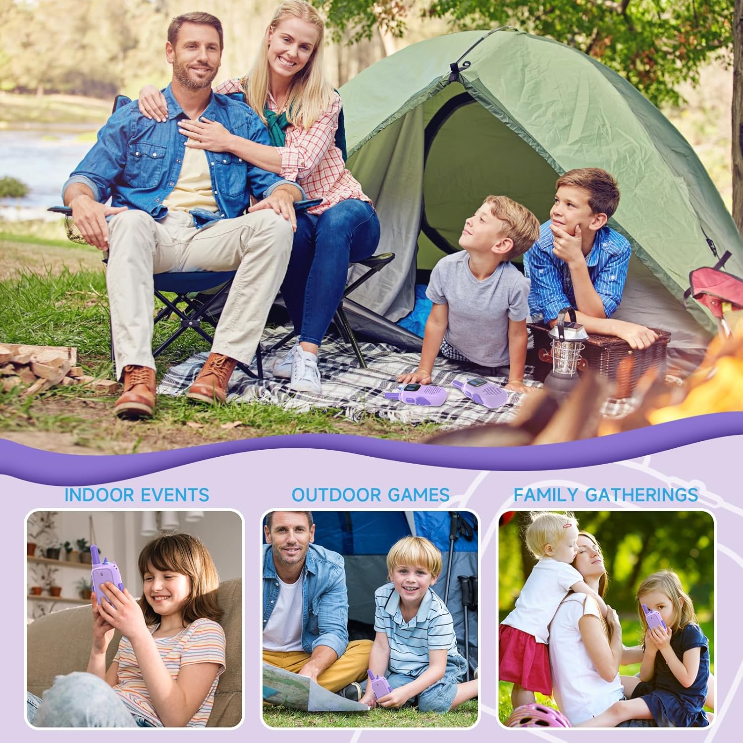 - Interactive Kid Toys: kids walkie talkies 2 pack can inspire the interest in communication and let your kids enjoy the adventure of the family or outdoor games. Help parents find an novel way to accompany kids and listen to their inner voices. Keep some naive secrets with friends or go on outside adventures. Not only improve communication and social skills, but also bringing relationship closer. Perfect gifts for girls boys ages 3-12.
