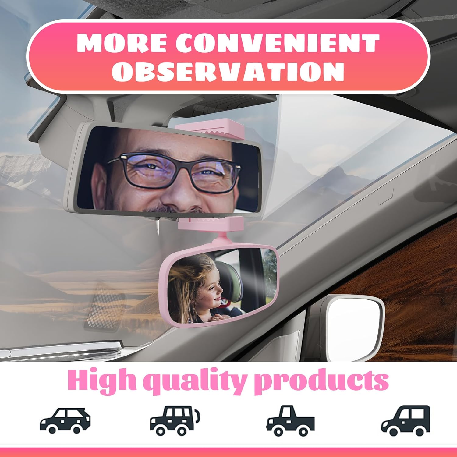 360-Degree Baby Car Mirror for Rear-Facing Seats,Kids Safety Mirrors with Tool-Free Installation,Kids Rear View Mirror BPA-Free Shatterproof & ASTM Certified (Adjustable 14"-22") (PINK)