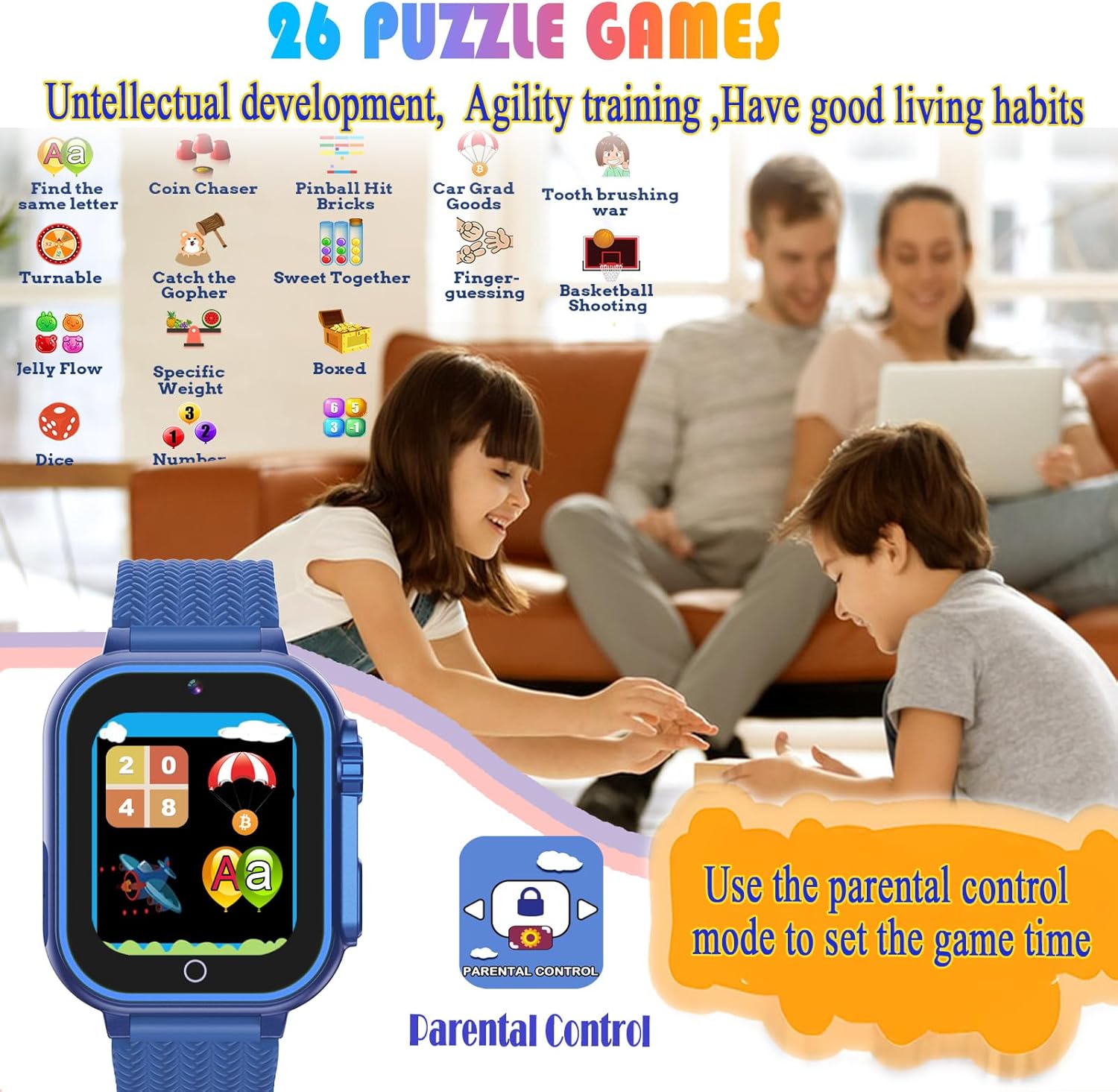 - SMARTWATCH FOR KIDS WITH SCREEN PROTECTORS:Our kids' smartwatch features a 1.54-inch IPS HD color touch screen and includes two screen protectors for extra durability. Equipped with a high-quality HD camera, video andmusic player, 26 puzzle games, pedometer, voice recorder, parent control, and much more! It’s the perfect combination of fun, learning, and convenience for your child.