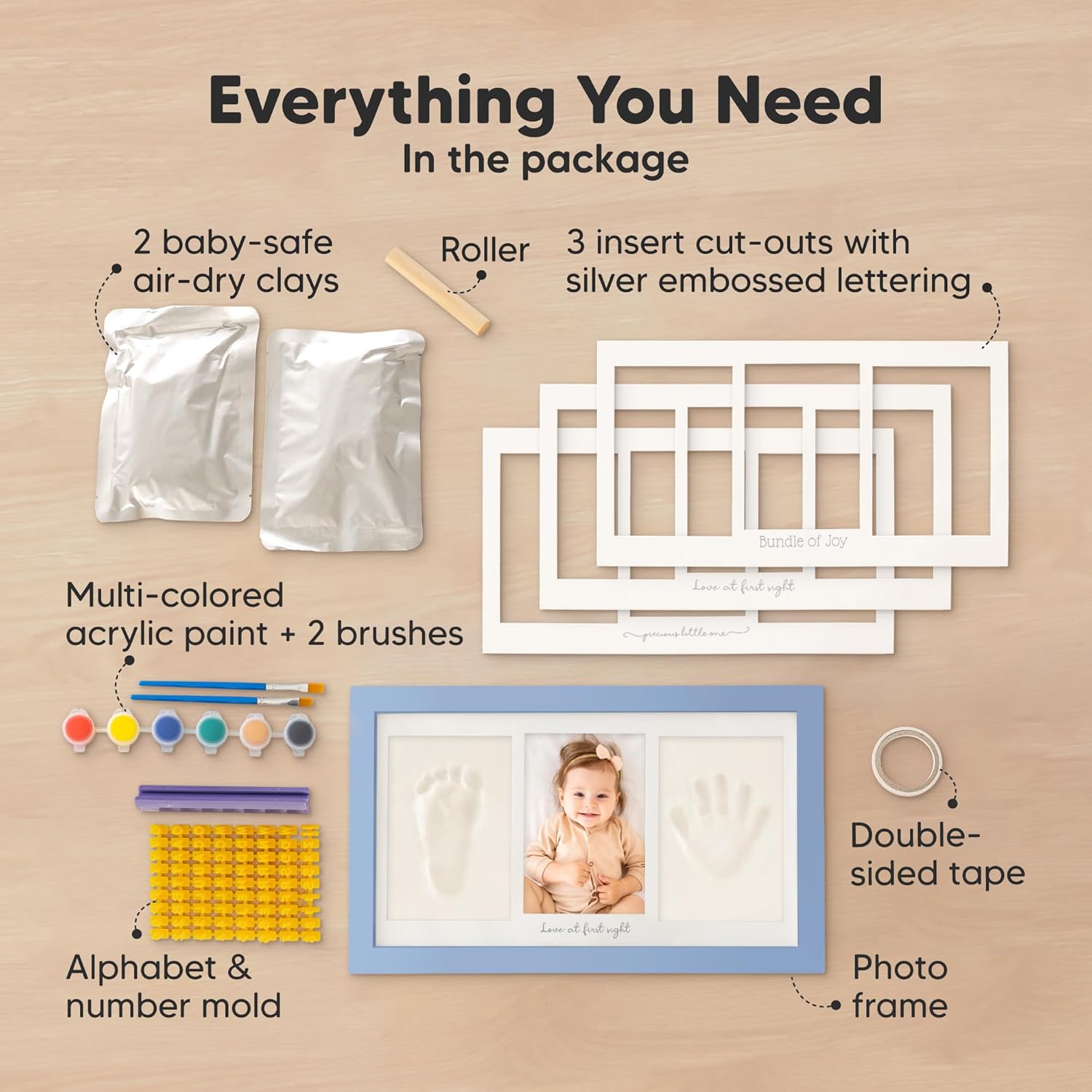 Baby Hand and Footprint Kit - Clay Handprint Keepsake Frame, Newborn Nursery Picture Frame, Personalized New Mom Gifts for Baby Shower & Registry (Cornflower)