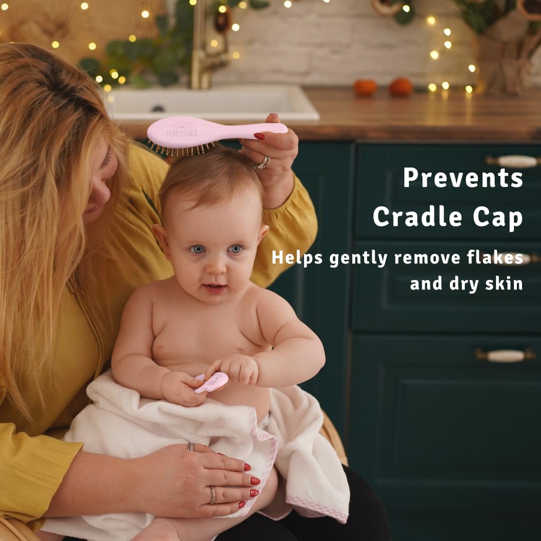 - Prevents Cradle Cap - Funfushka's all natural goat bristle brush provides gentle exfoliation to the baby's scalp. Regular, gentle brushing can help remove the flakes of the cradle cap without causing discomfort or irritation for your little one.