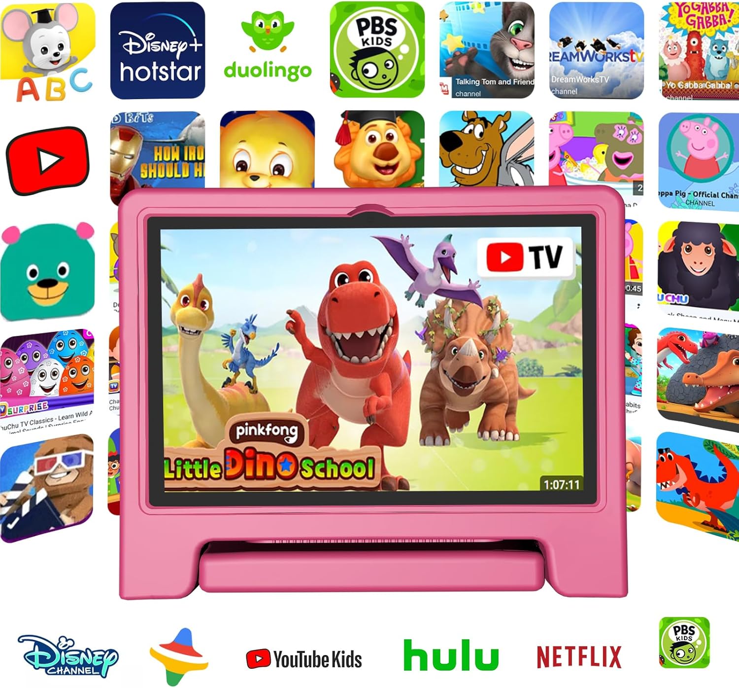 Tablet for Kids Age 3-12 10.1 inch Android 14 6000mAh 8GB RAM+64GB ROM(Expandable to 1TB Kids Tablet WiFi6 Google Kids Space Parental Control 1280 * 800 HD Screen (Pink)