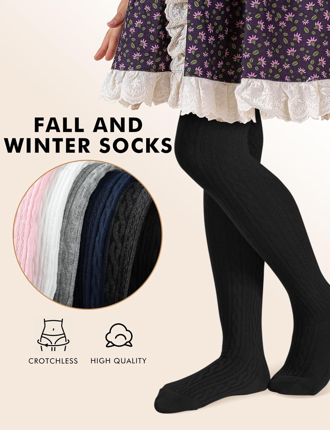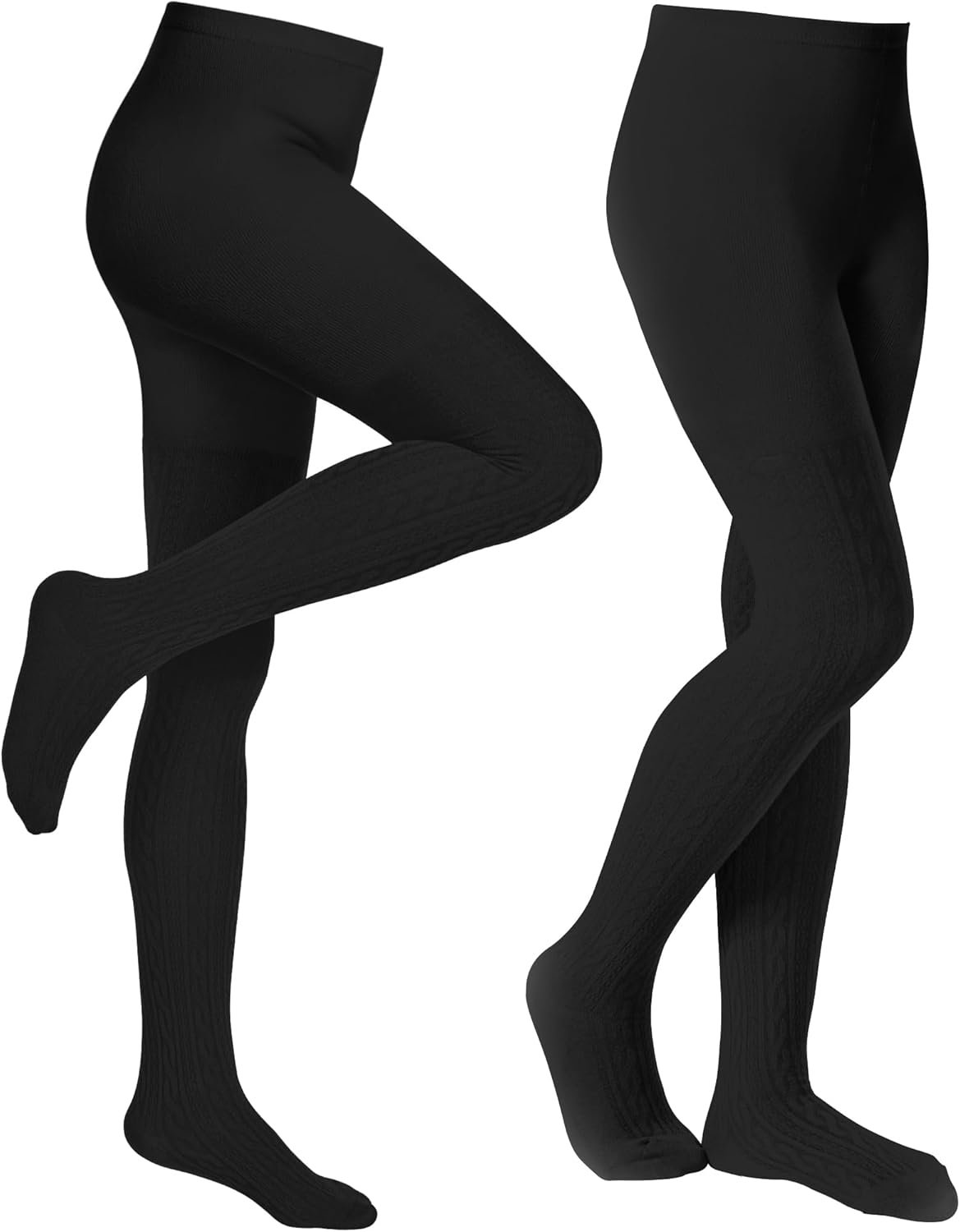 Baby Girls Tights Cable Knit Toddler Leggings Winter Solid Cotton Tights School Stockings 2 Pack 2T-12 Years