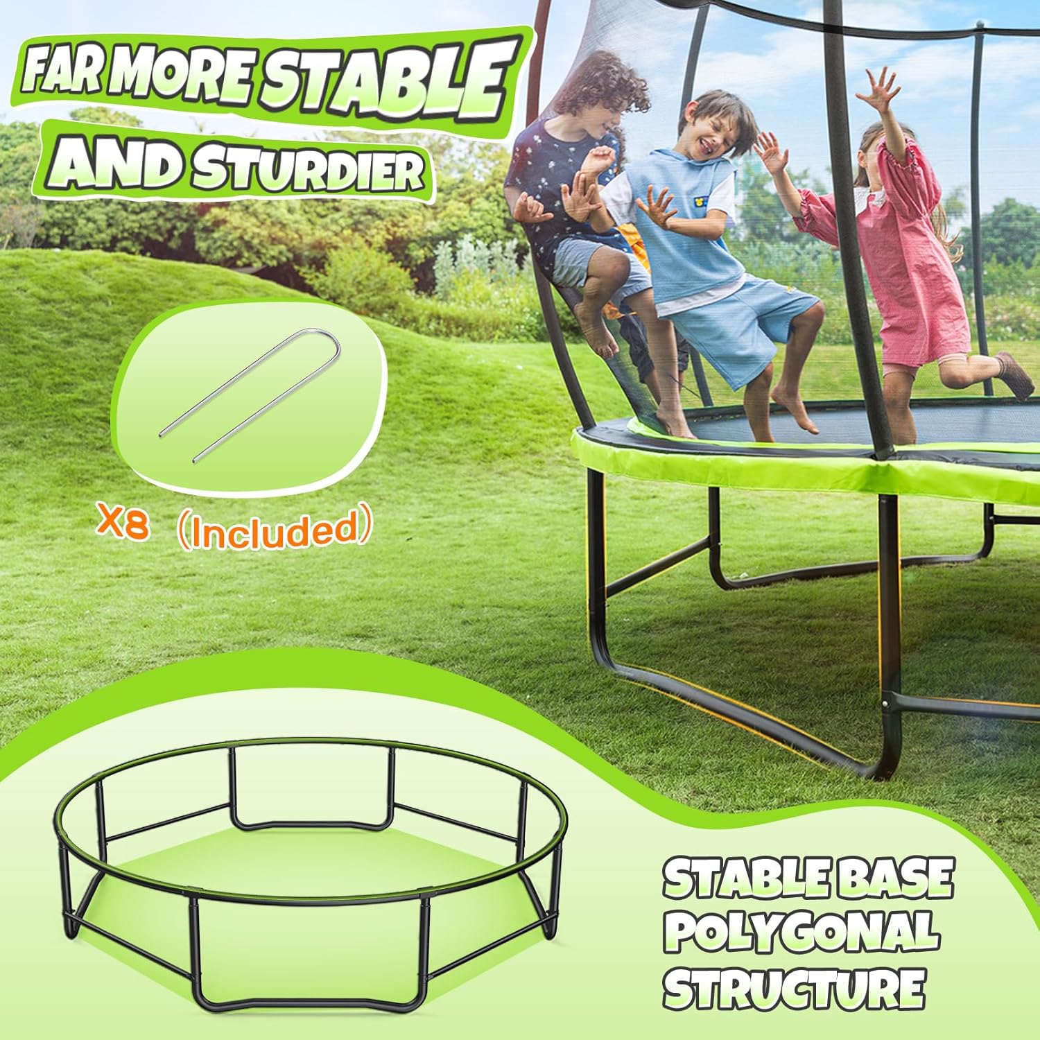 - Let kid play with confidence - Safety First - With CURVED POLES, your trampoline has MORE SPACE between kid and the poles for wild bouncing fun. The black OCTAGON BASE makes trampolines more STABLE for many kid to play together and make wonderful memories. Uncompromising safety!(ASTM F381-16 Standard)