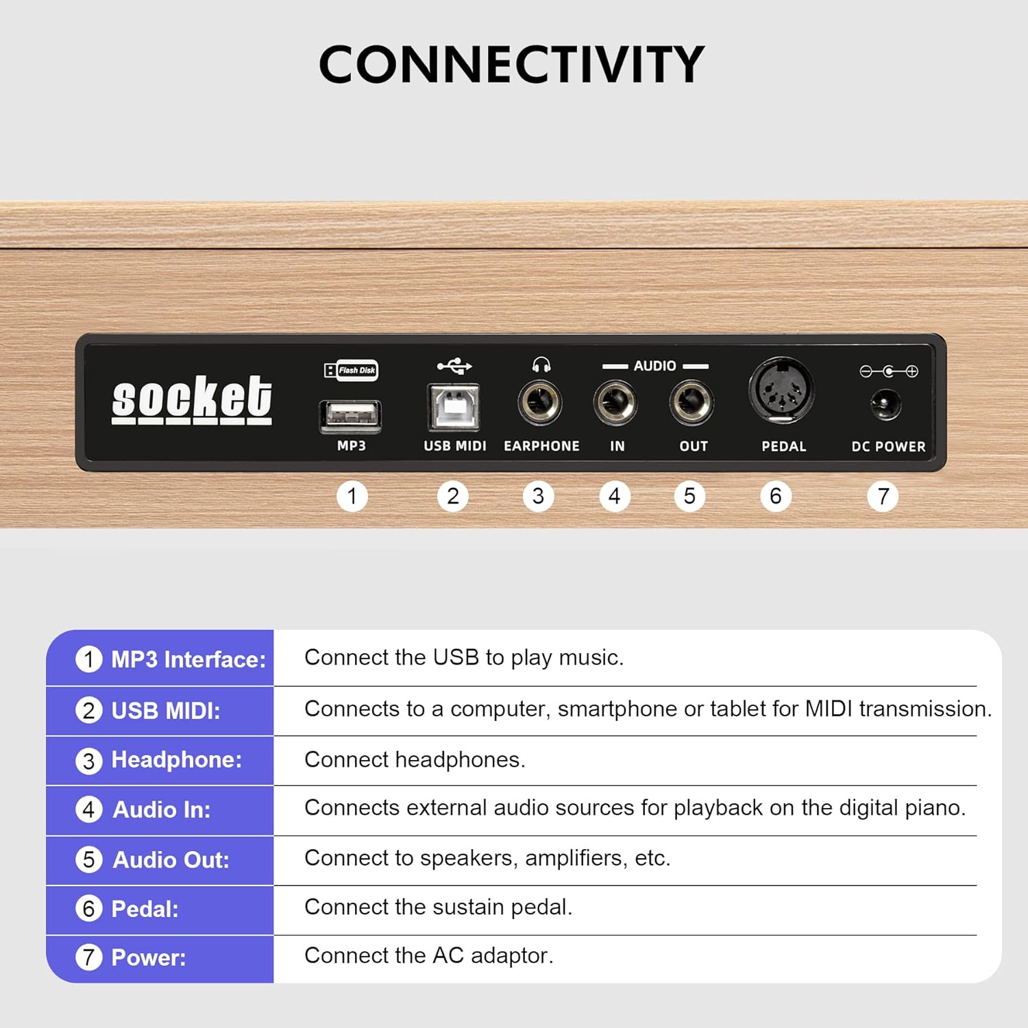 Digital Piano Keyboard for Beginners, Full Size 88 Key Semi-Weighted Keyboard Electric Piano with Stand,Power Adapter,Sheet Music Stand,Pedal,Headphone,USB-MIDI Compatible,Wood Grain Apricot