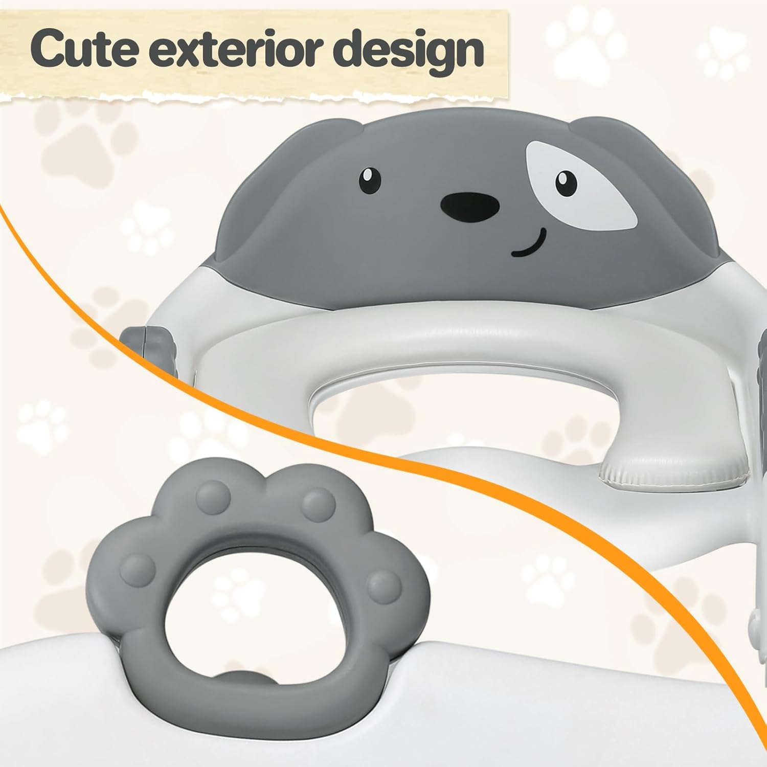 - Stable Triangular Structure:Our latest toilet step stool with a upgrade triangular structure that is more stable than ever before. The seat's base features a 6-point anti-slip mechanism for steadfastness,offering ample space and safety for climbing, meffectively addressing common issues of seat wobbling. Anti slip handrails make it easier for children to climb.