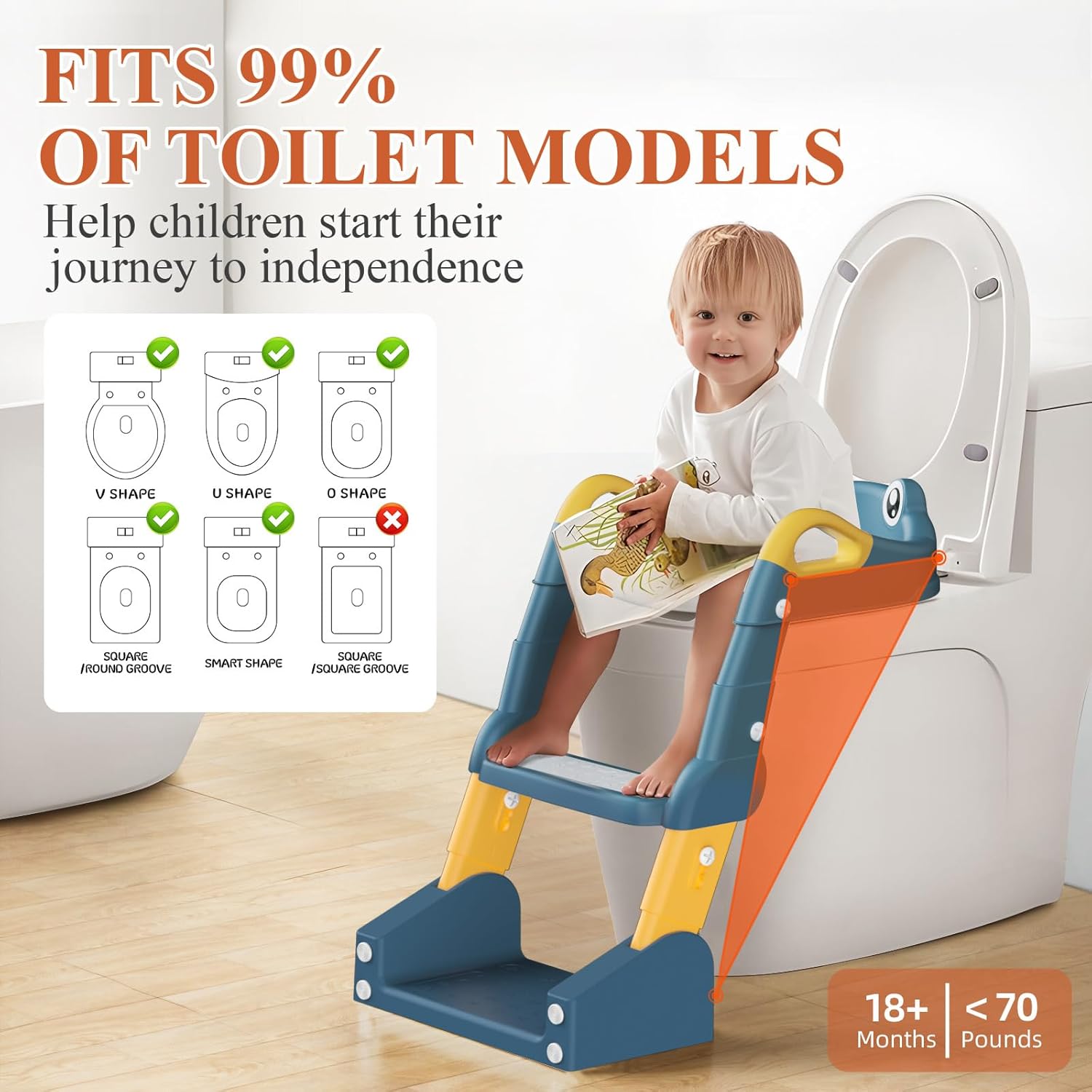 - 2-IN-1 Training Potty: The upgraded potty training toilet seat can be used as a potty chair or toilet ladder to help your child develop all-around toileting skills. Its form can be easily converted, making toileting more convenient, and at the same cost, it can meet more of your needs