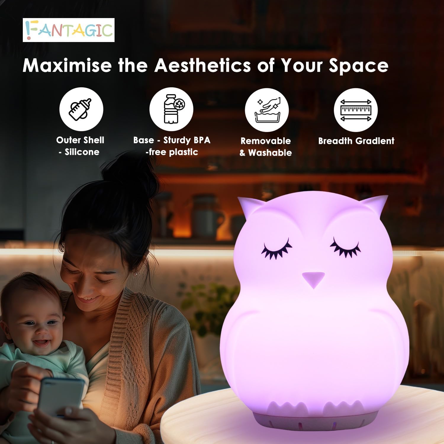 Combined Bluetooth Speaker & Nightlight With 9 Color Emissions, Child Friendly Silicone & BPA Free, USB Recharging, Receives Audio From Computer, Phone Or Tablet, and includes Remote Control (Owl)