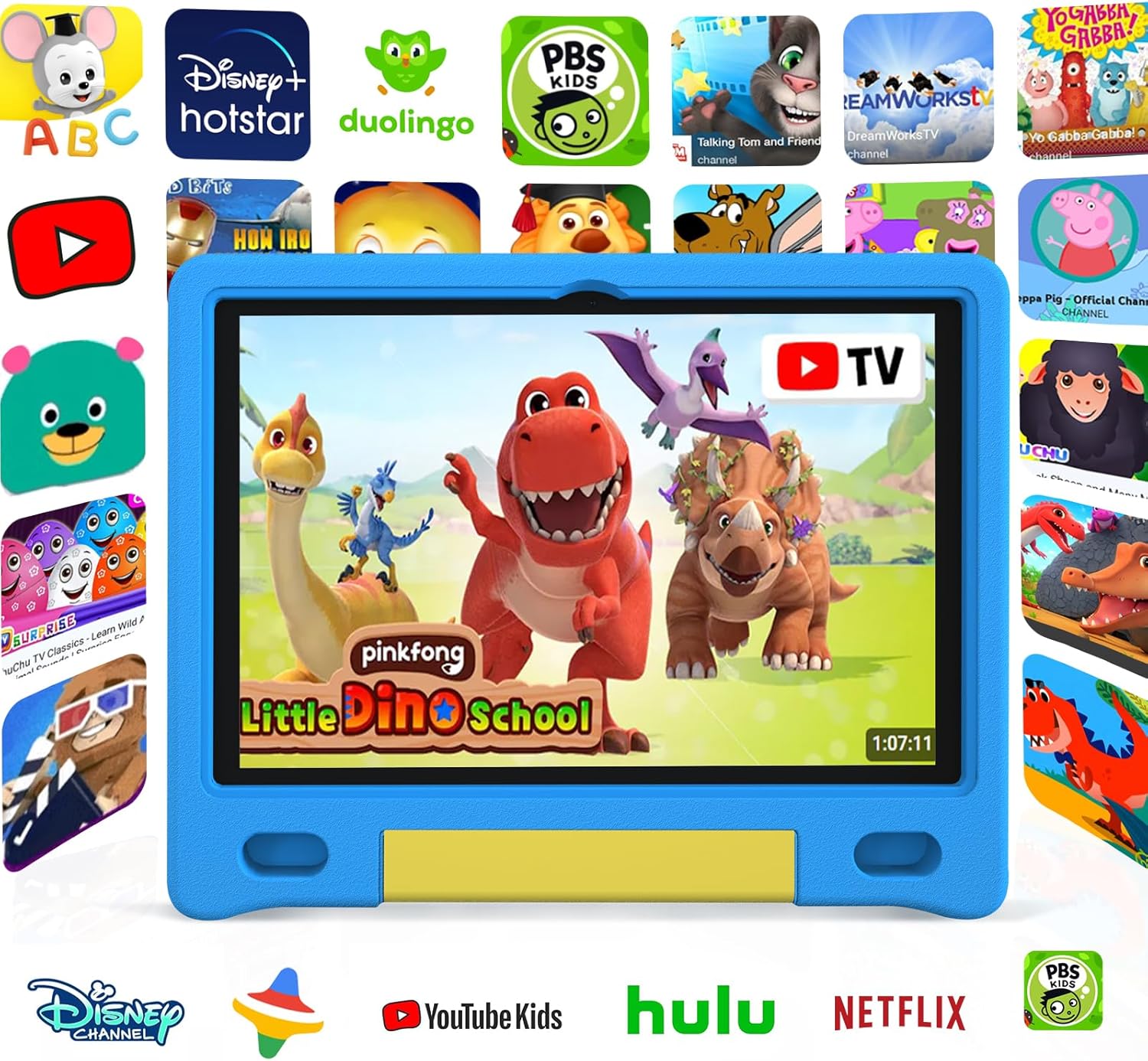- 【IDEAL GIFTS FOR KIDS】YACXBTK tablet for kids 3-7 year old, has the 10.1inch high-definition HD screen with a 1280*800 resolution,low-blue-light technology offers a clear viewing display, providing your child with a comfortable,eyes caring viewing experience. Plus, you can easily cast to TV for even more fun! kids ideal gifts aging from 2,3,4,5,6,7,8,9...12,for birthday, Christamas ,back-school festival