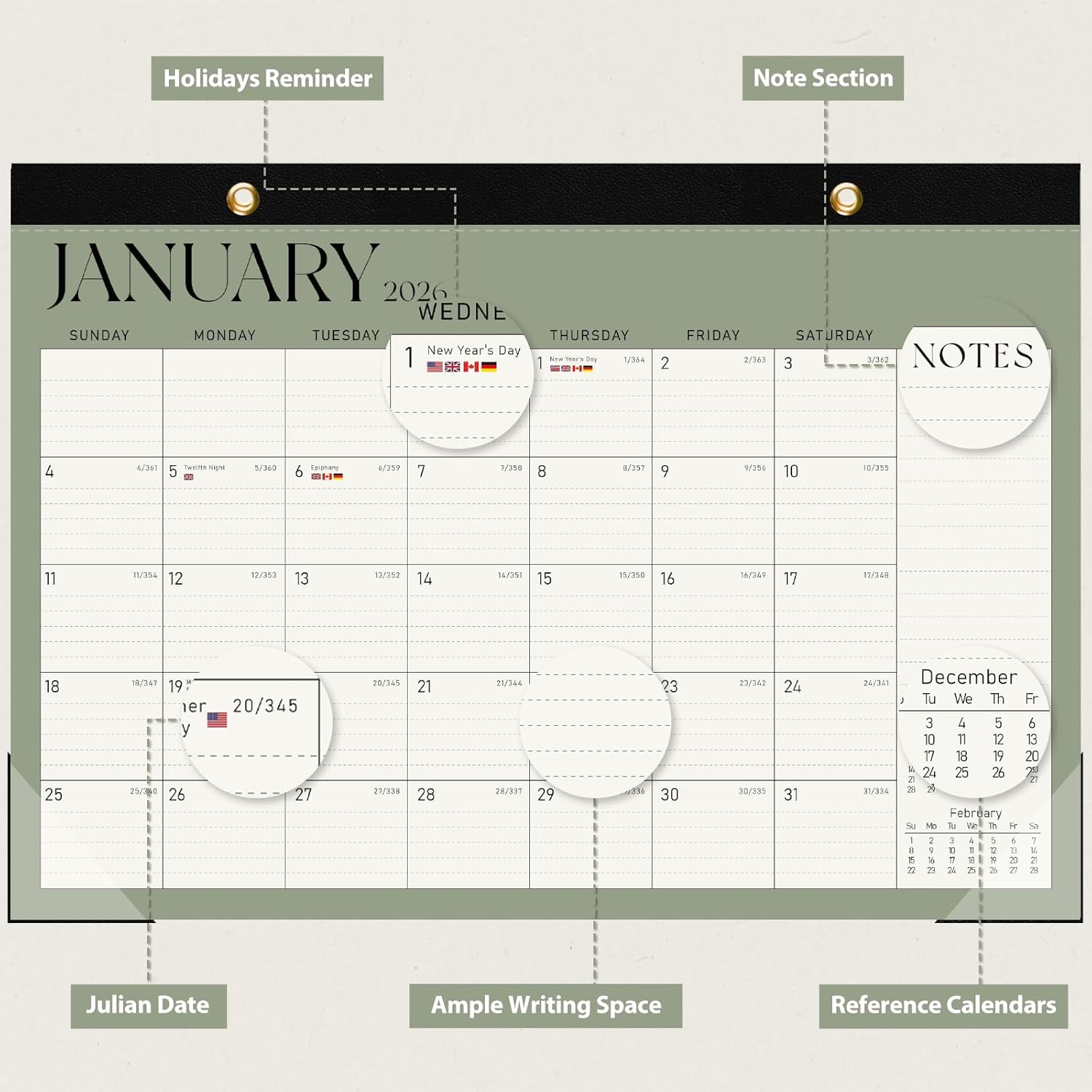 - [PERFECTLY SIZED FOR PLANNING] – Measuring 17" x 12", the 2025-2026 desk calendar offers ample space for notes, appointments, and reminders while fitting neatly on your desk or wall. A dedicated notes section helps keep memos, goals, and to-do lists organized in one place.