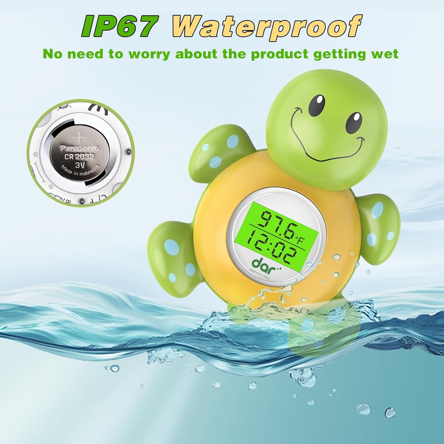 - 【Fun of Bathing Timer】This water temperature thermometer have a cute tortoise shape and automatic timing function, it will automatically time as soon as it is placed in water. It could works as bath temperature toy for babies to play in bathtub and swimming pool ,bring you funny and happy bath time