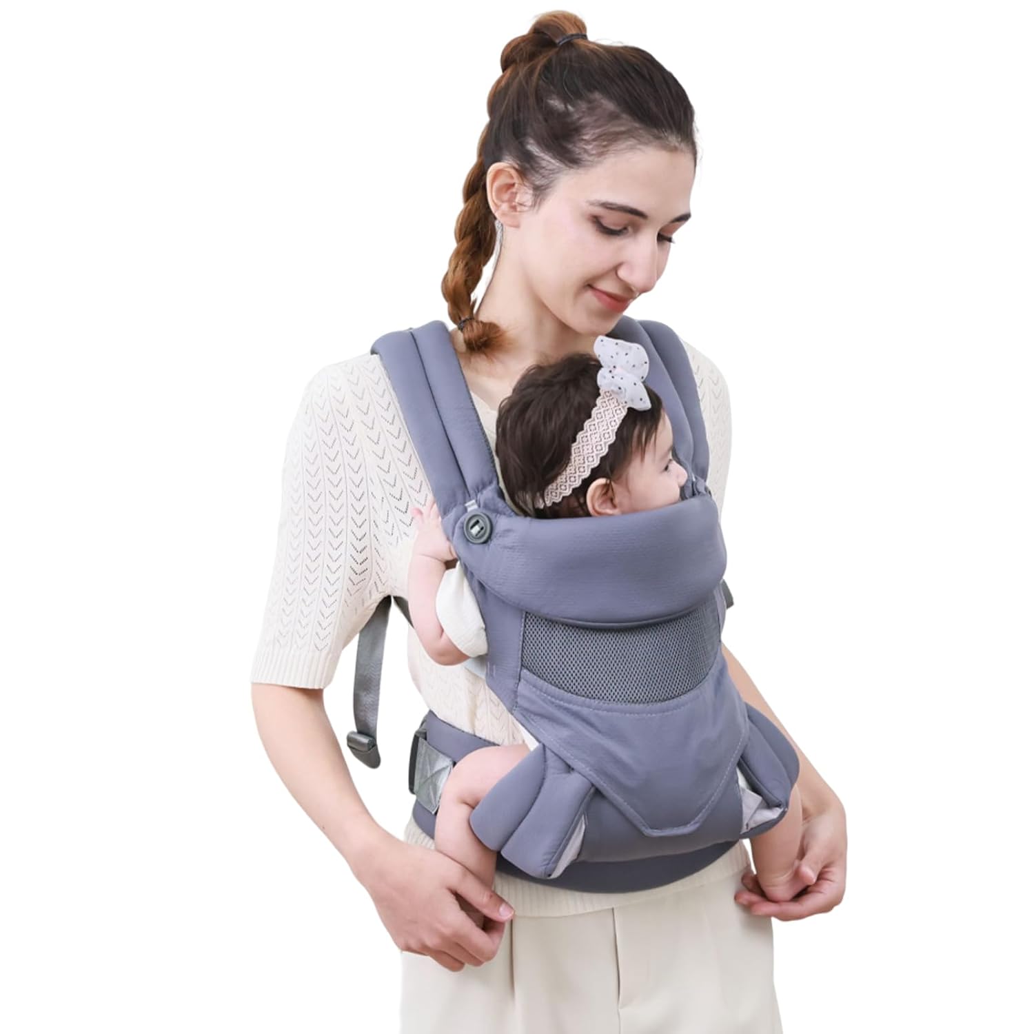 - 𝐄𝐫𝐠𝐨𝐧𝐨𝐦𝐢𝐜 𝐁𝐚𝐛𝐲 𝐂𝐚𝐫𝐫𝐢𝐞𝐫: Front baby carrier comes with a removable baby bonnet for sun protection and privacy. Padded shoulder straps and wider waist belt reduce pressure on shoulders and waist, more suitable for caesarean mums, making life easier for new parents
