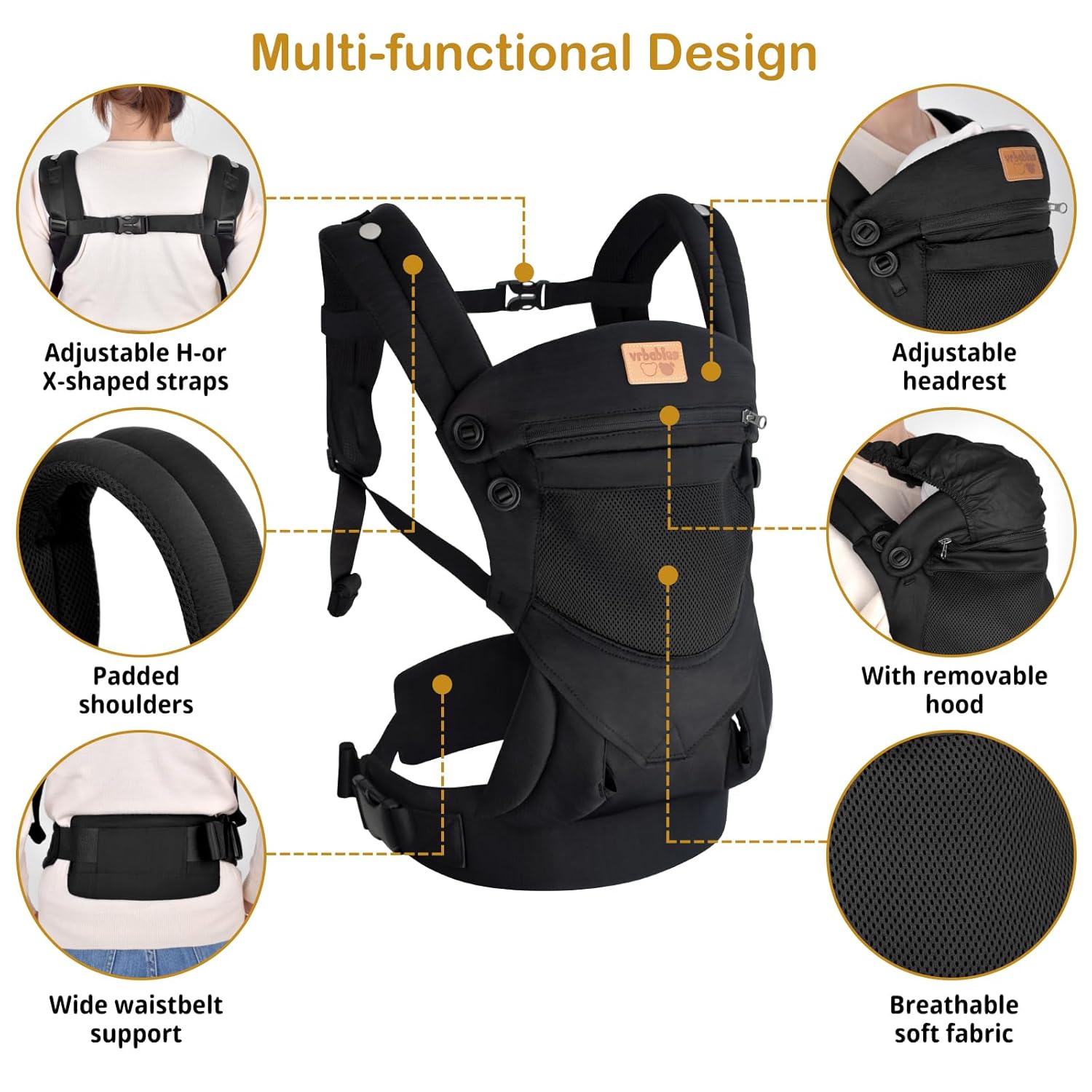 - 𝐁𝐞𝐬𝐭 𝐆𝐢𝐟𝐭𝐬: vrbabies black baby carrier with easy-to-use carrying method makes it easy for any inexperienced parent to carry a baby. It can be given as a gift to expectant mums who are about to give birth, friends, bosses, subordinates, relatives, sisters, girlfriends