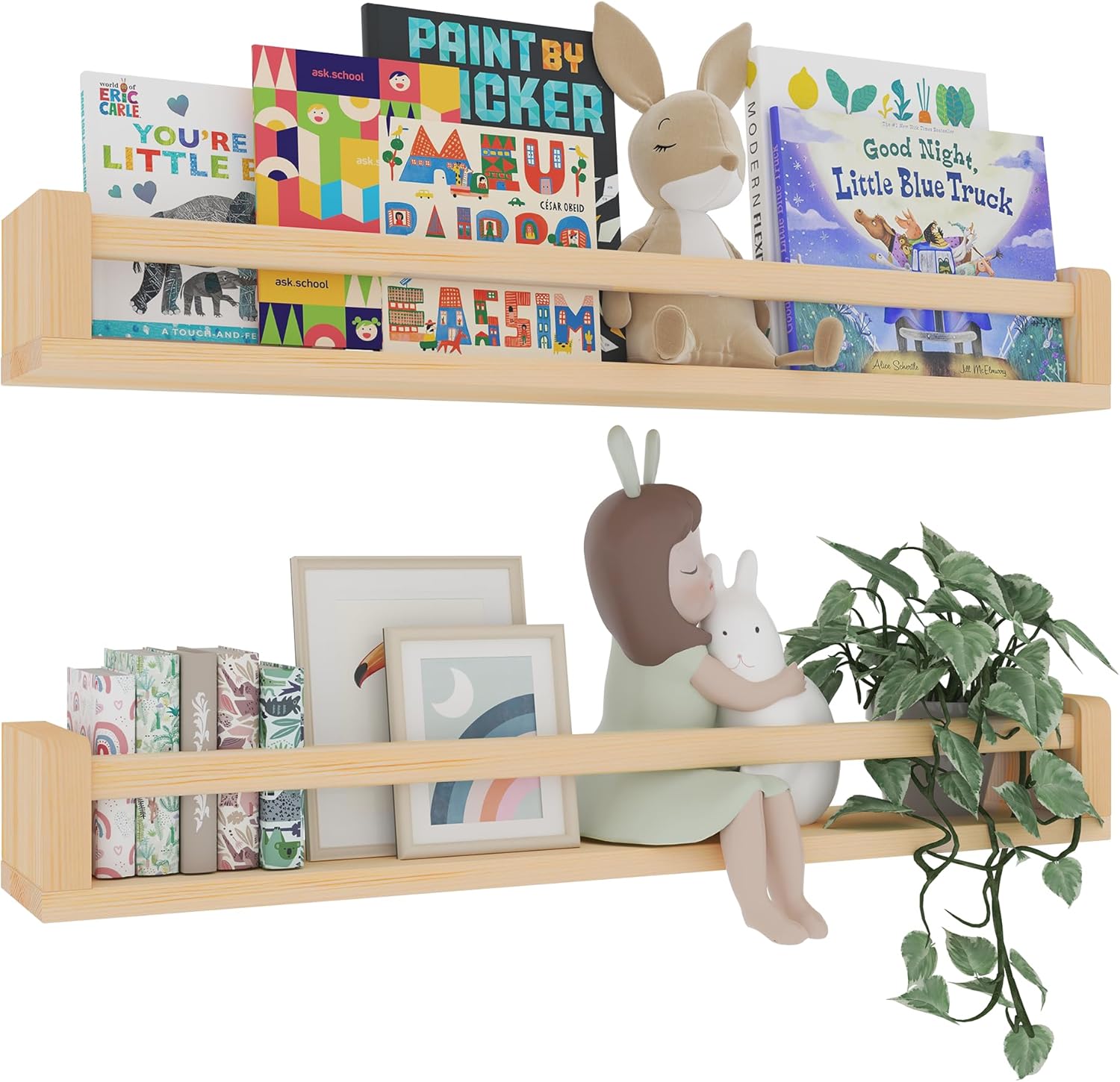 Heimlove 32 Inch Nursery Floating Shelves, Wood Nursery Book Shelves for Wall, Wall Bookshelf for Kids Solid Wood Wall Mounted Shelves for Books,Toys and Decor Storage, Set of 2