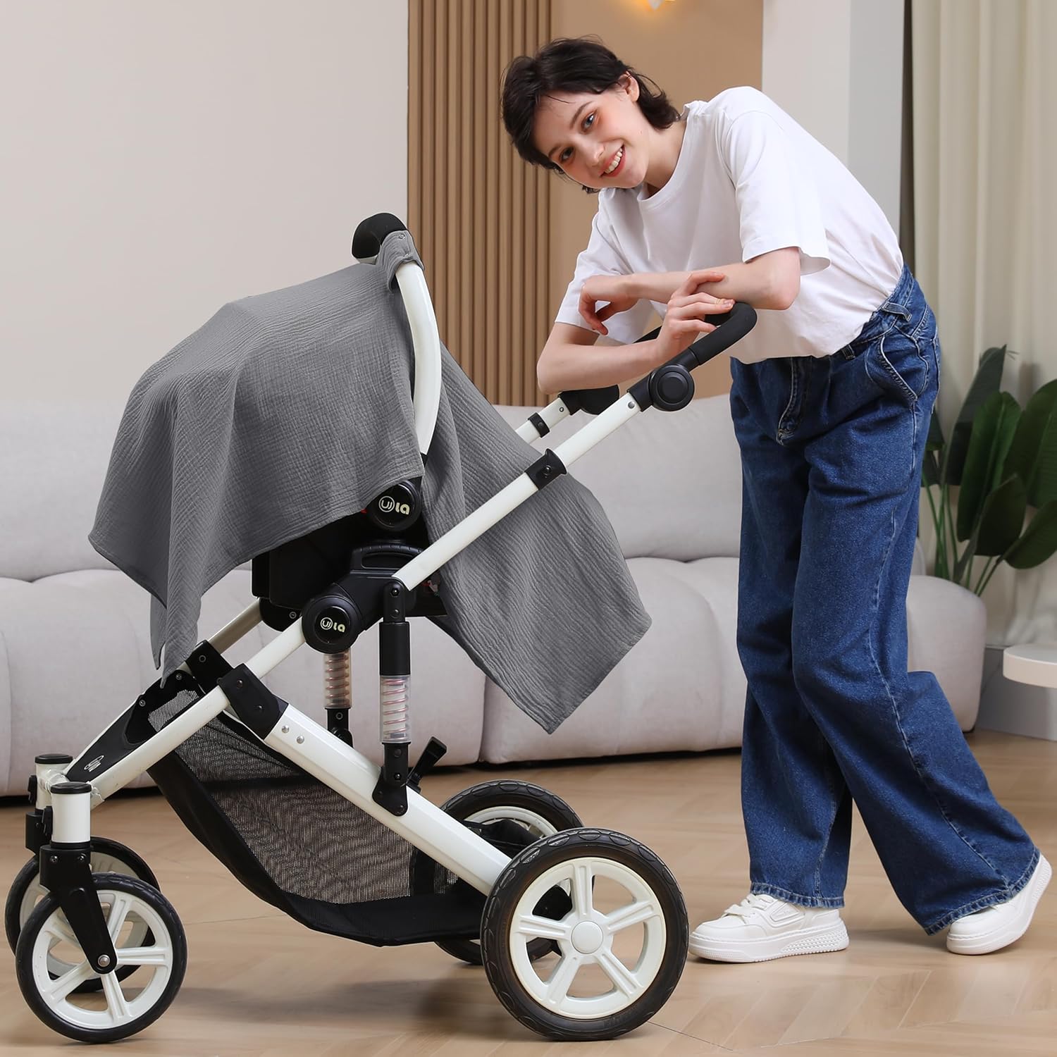 100% Muslin Cotton Car Seat Cover Baby, Carseat Canopy Cover, Universal Fit Stroller Covers for Boys and Girls (Grey)