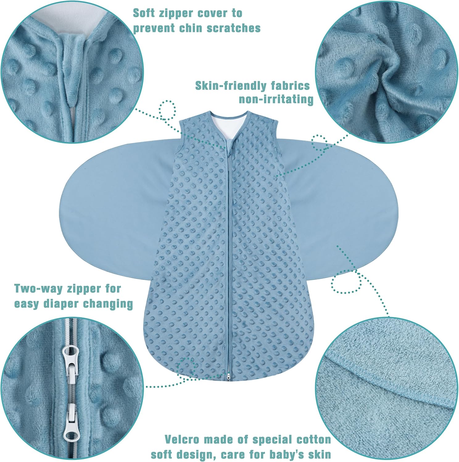 - Our swaddle wings are made of soft linkable new cotton fabric instead of the sharp velcro design of other products,Safer and more comfortable.The TOG rating is 2.0, and closing the wings TOG can be upgraded to TOG 2.5, providing proper comfort for mild seasons or climates.