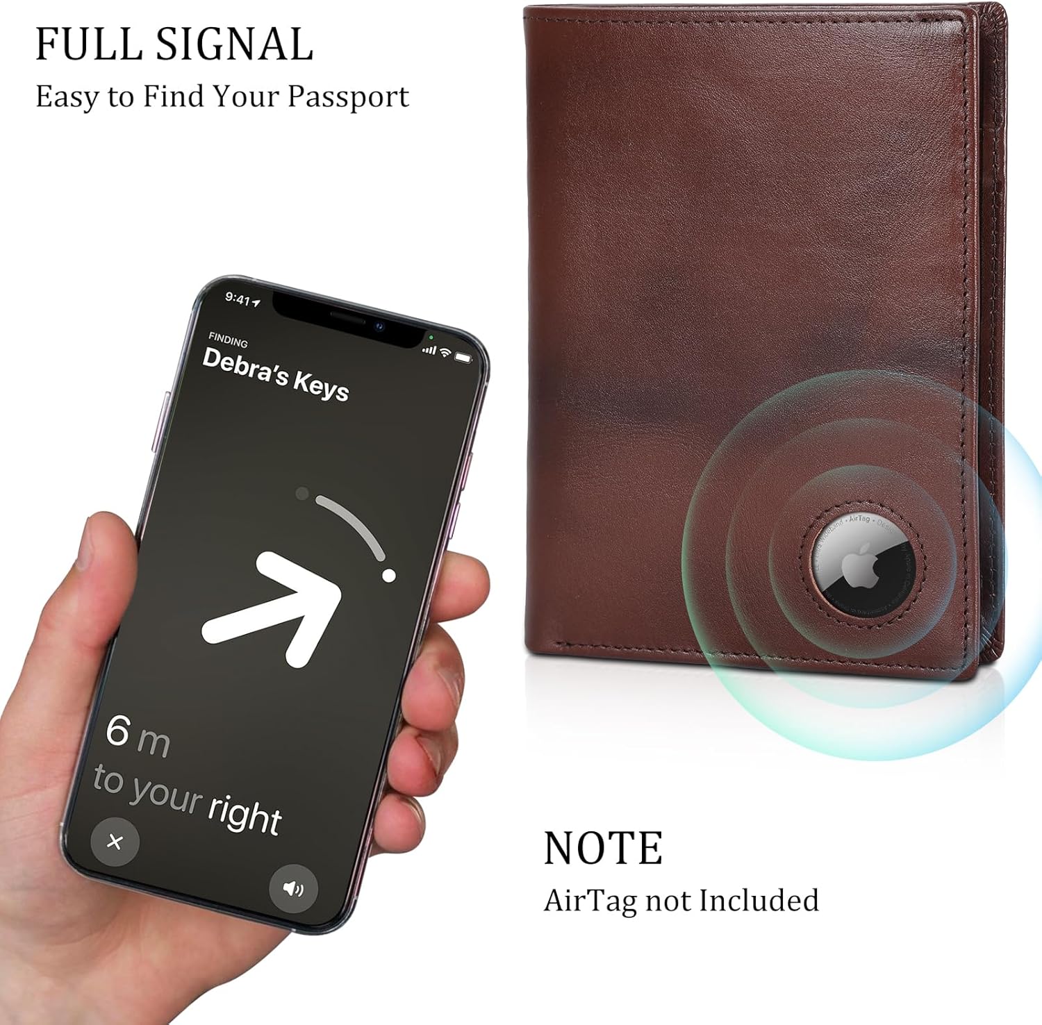 Polare Luxury RFID Blocking Leather Passport Holder Travel Wallet For Men and Women (Coffee with AirTag Slot)