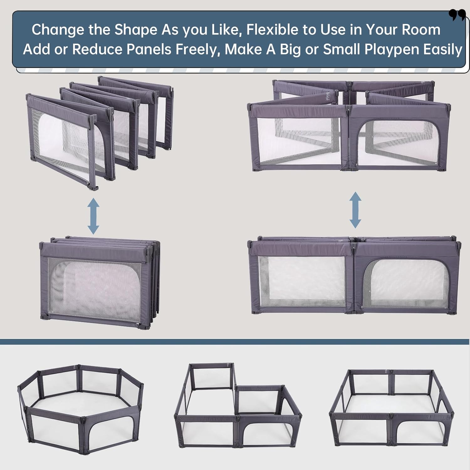 Foldable Baby Playpen, Shape & Size Adjustable Playpen for Toddler, 79x71 Large Play Pens Safety Mesh Foldable Playard for Babies, Portable Baby Fence Play Area Kids Play Pen, Dark Grey