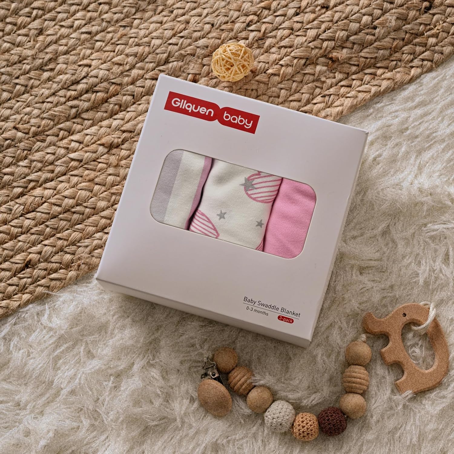GLLQUEN BABY Swaddles for Newborns - 3 Pack Baby Adjustable Swaddle Sleep Sack for Boys and Girls 0-3 Months,Baby Wrap Swaddle Sack, Stripe & Heart, Nursery Essentials