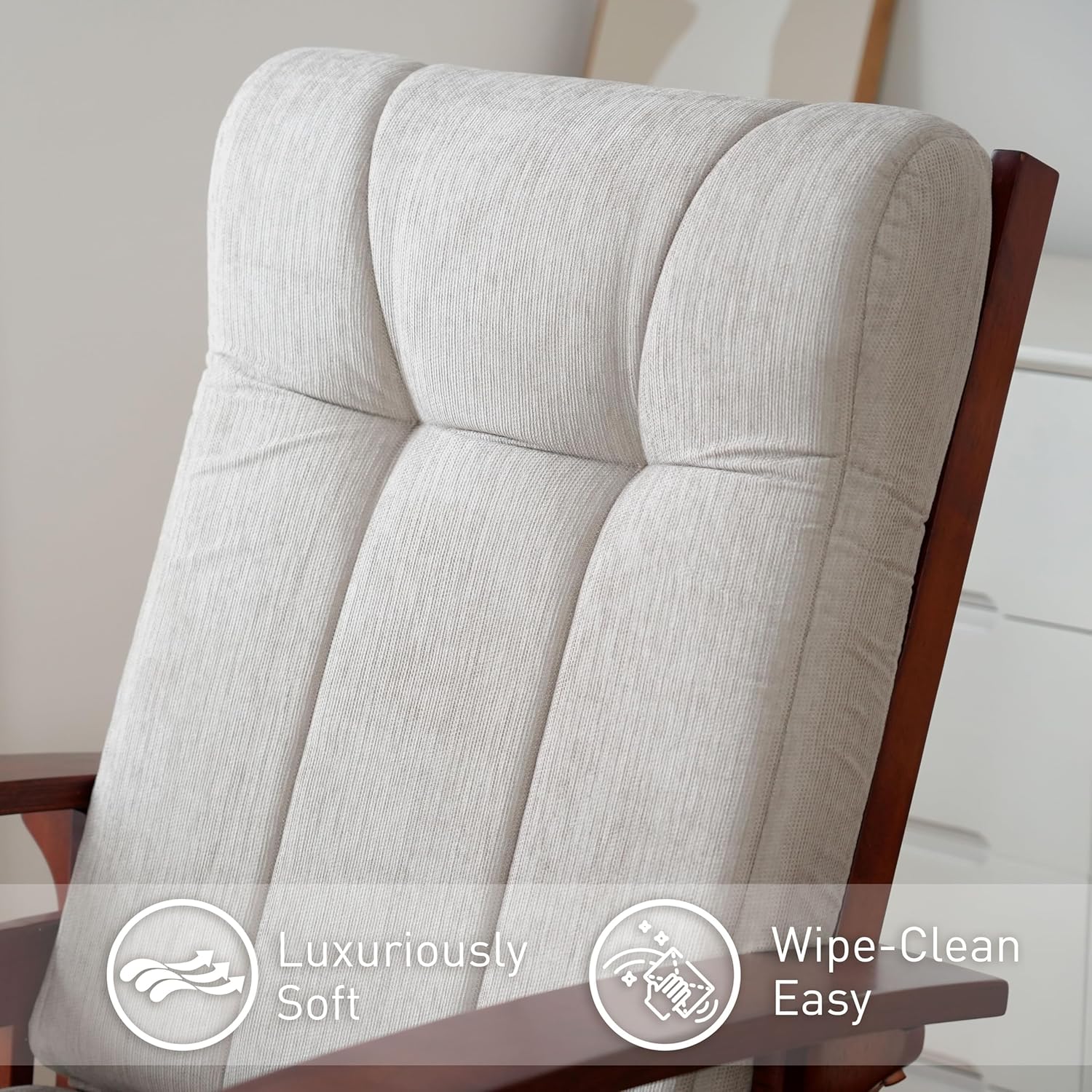 - Smooth Rocking Motion:Equipped with dual gliding full mechanical bearings, the nursery chair offers effortless horizontal rocking. The smooth and silent operation ensures a gentle and continuous rocking motion, ideal for soothing babies and relaxing adults.