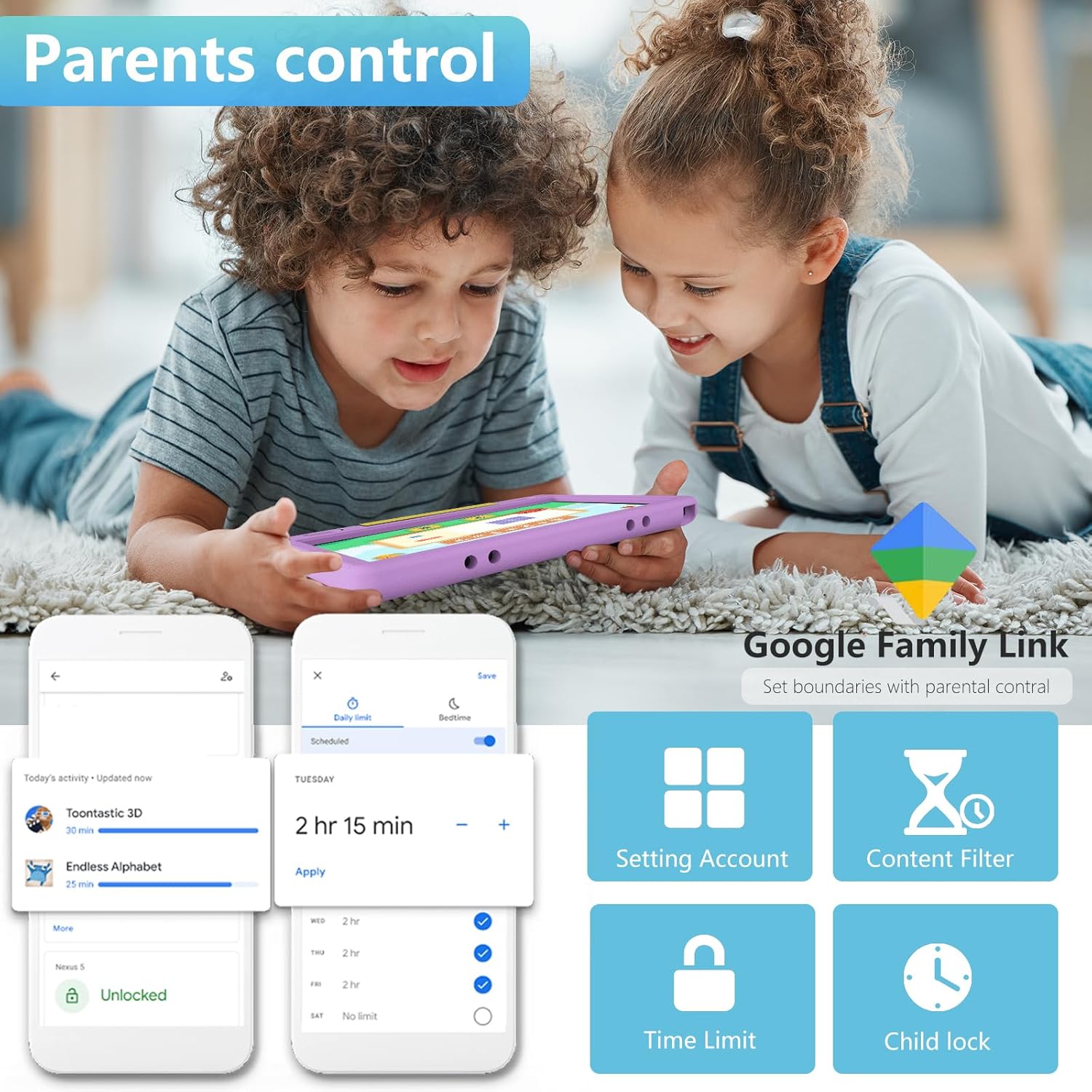 - 【ROBUST PARENTAL CONTROLS】 Google Family Link Parent Dashboard allows parents to manage everything on the phone, including content-filtering and selectting, screen-time limits, pausing or resuming the device, accessing educational content, and approval requests from the app store, like downloading Netflix, Disney+, and Zoom.Make parents peace of mind when handing kids the tablet.