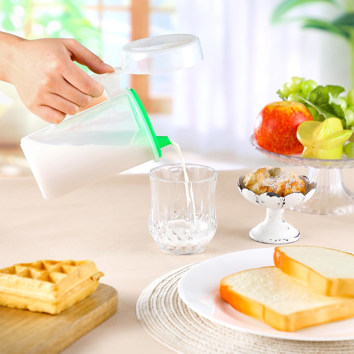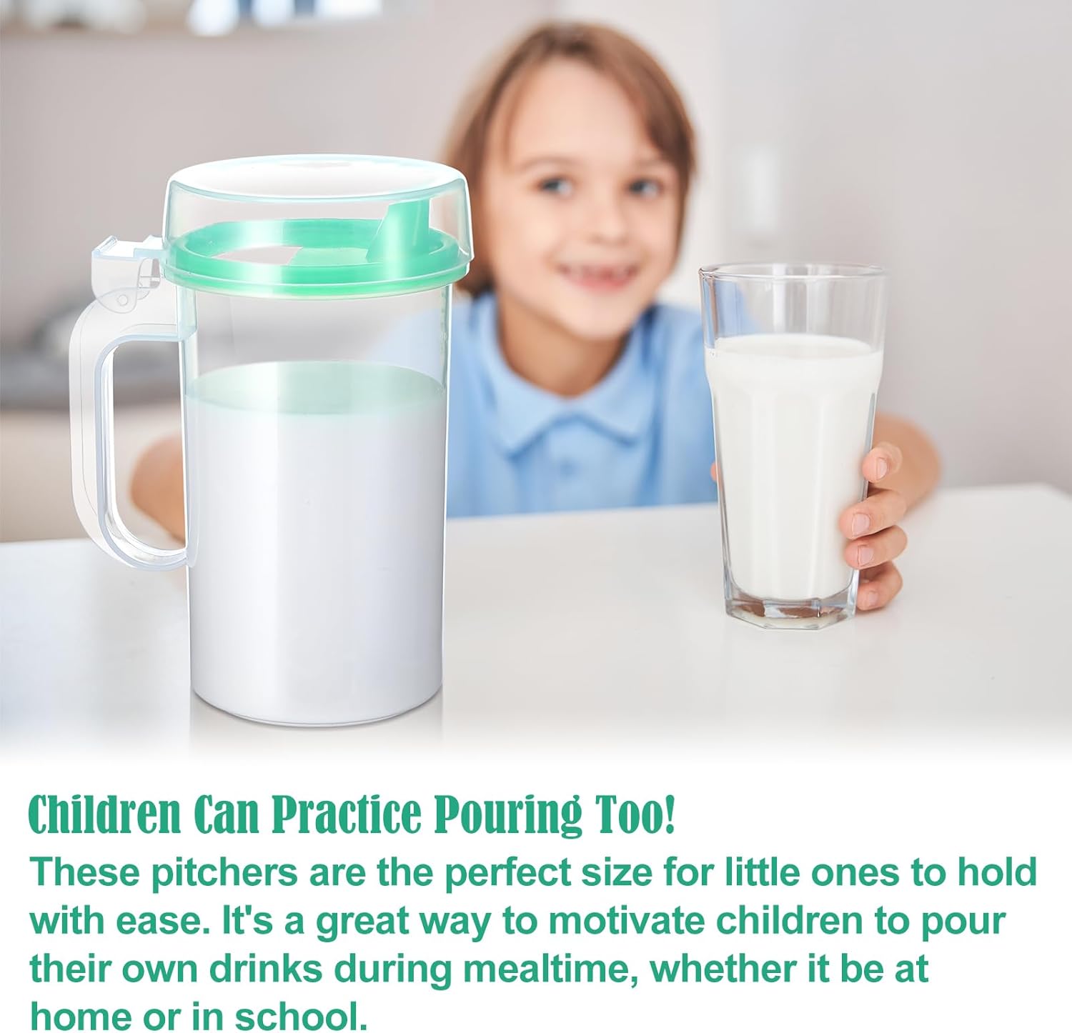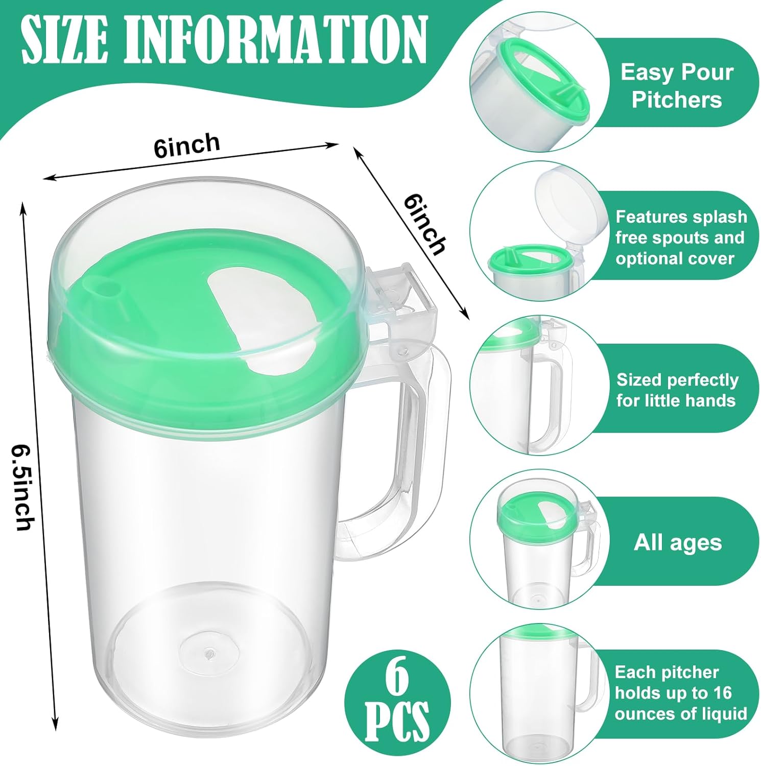 Newtay 6 Pack Early Learning Kids Easy Pouring Mini Pitchers Clear Plastic Pitcher with Lid and Handle Easy Pour Bottles 16 Oz. Jugs with Lids for Classroom Nursery Home (Light Green)