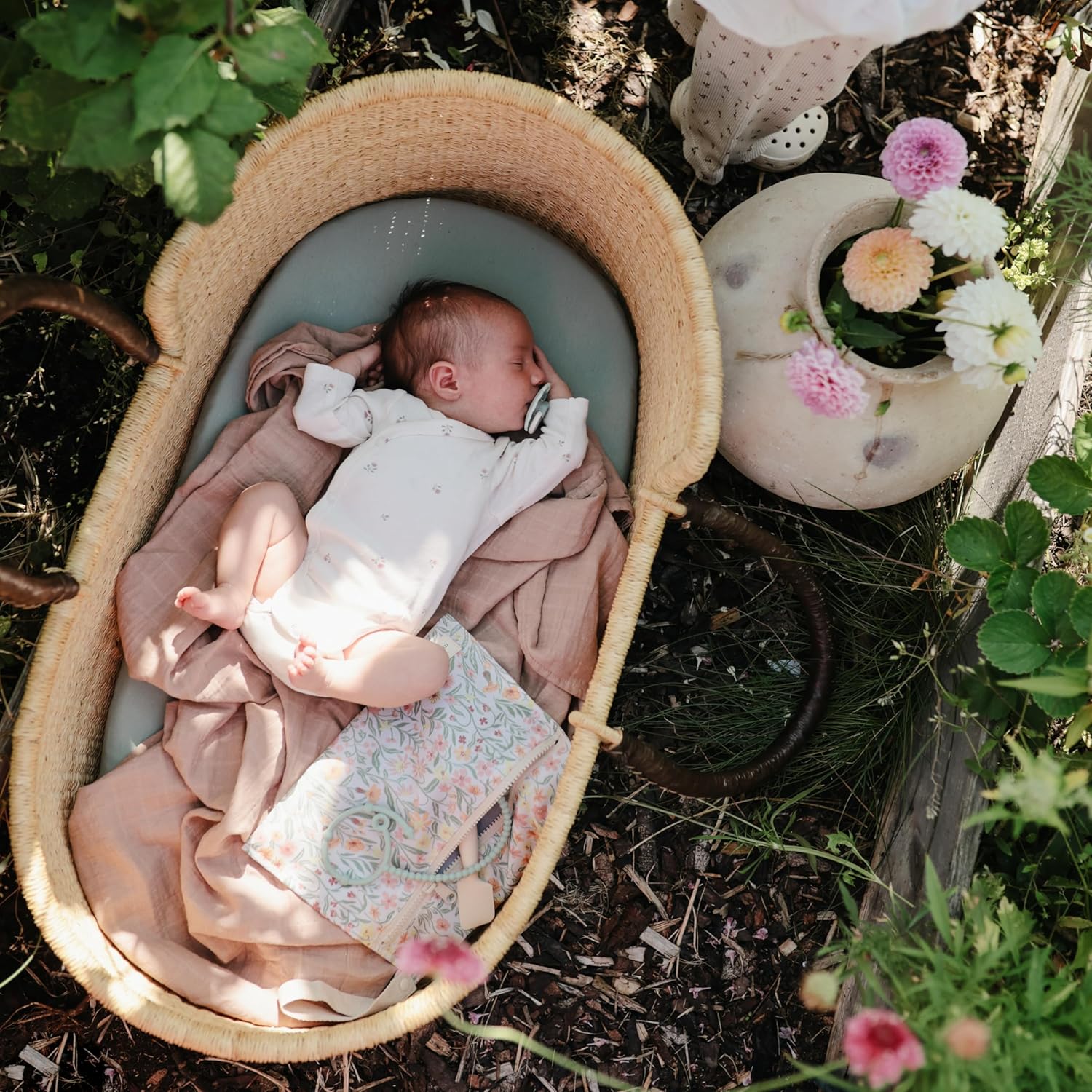 mushie Water Resistant Wet Bags | Large & Small Reusable Storage Bag for Baby Items and Travel | Zippered Pockets with Handle | Machine Washable, Set of 2 (Pastel Blooms)