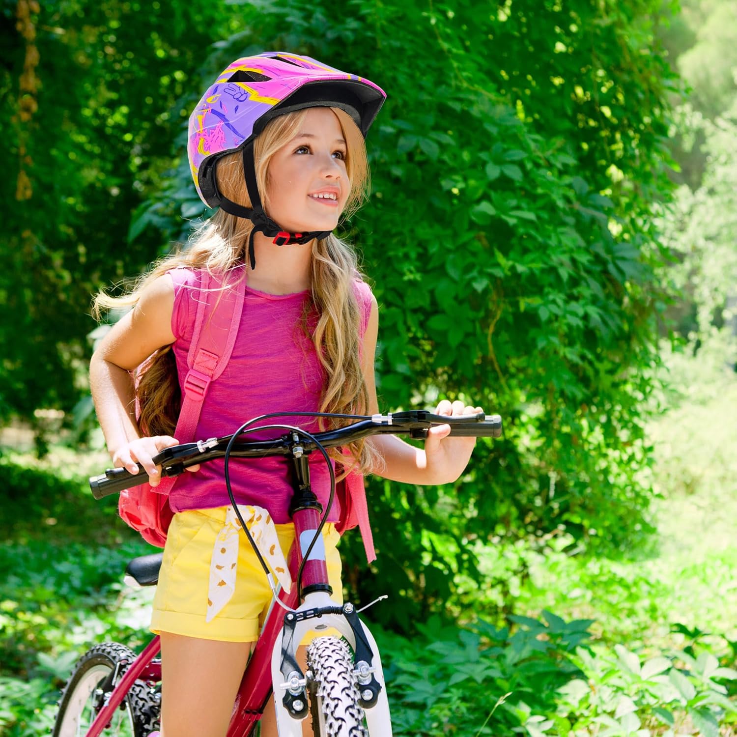 - HEAD CIRCUIT ADJUSTER: In response to the changing head size of growing children, this kids' bike helmet can be easily adjusted with the head circumference adjuster, which covers a range of 20.5 to 22inches (approx. 52 to 56 centimeters), and with the quick-release buckles, the rear wheel can be adjusted with one hand to comfortably fit the chin and keep it in place