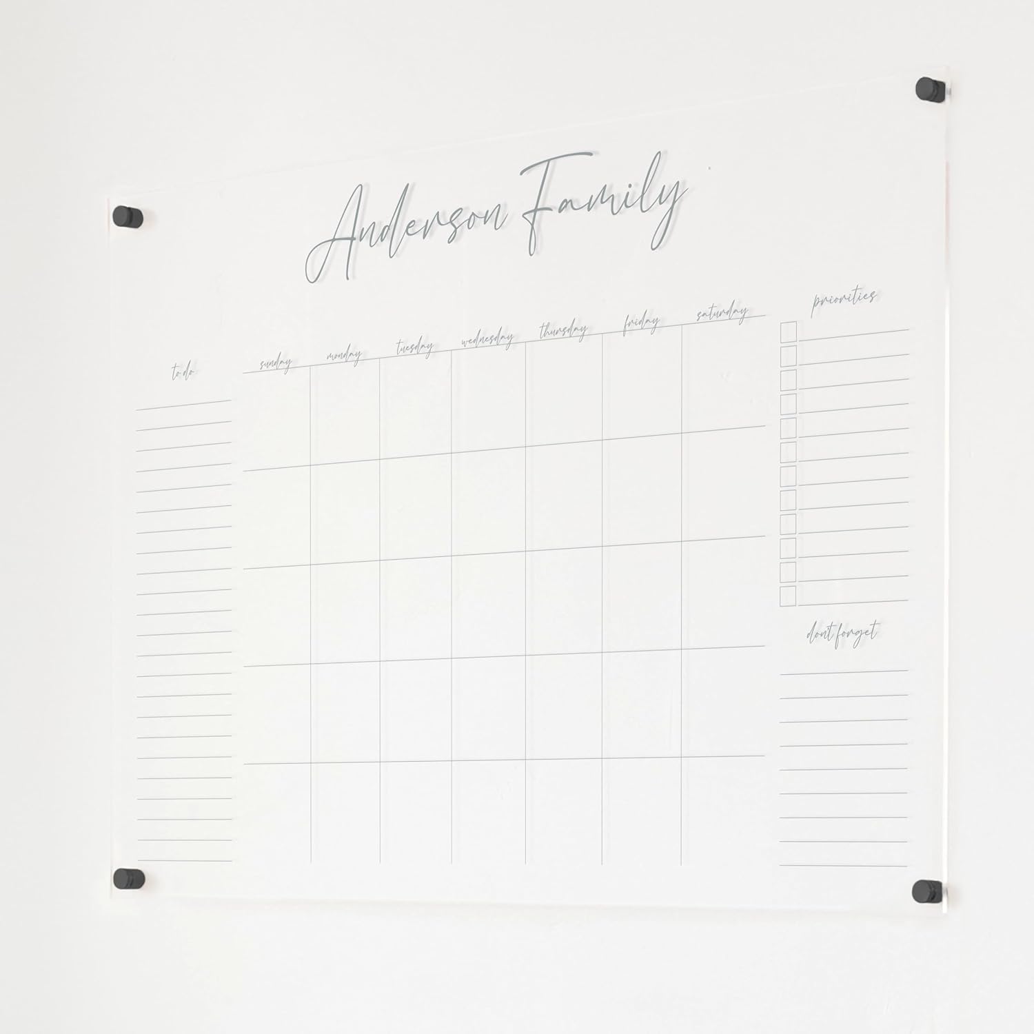Personalized Clear Acrylic Calendar for Wall, Calendar Whiteboard for Wall, Dry Erase Wall Calendar, Wall Calendar Organizer System for Home (Cursive, Grey, 38"W x 26"H)