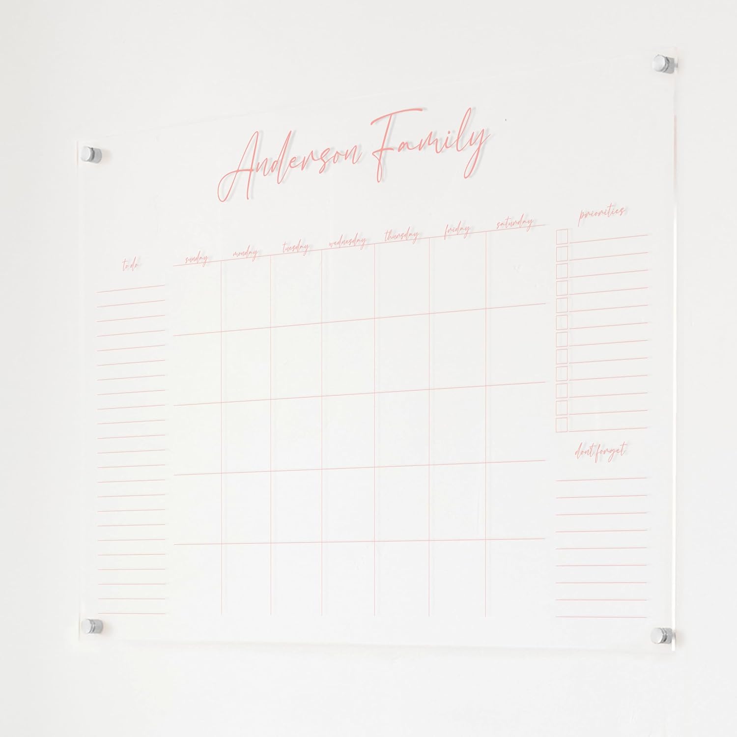 Personalized Clear Acrylic Calendar for Wall, Calendar Whiteboard for Wall, Dry Erase Wall Calendar, Wall Calendar Organizer System for Home (Cursive, Blush, 38"W x 26"H)