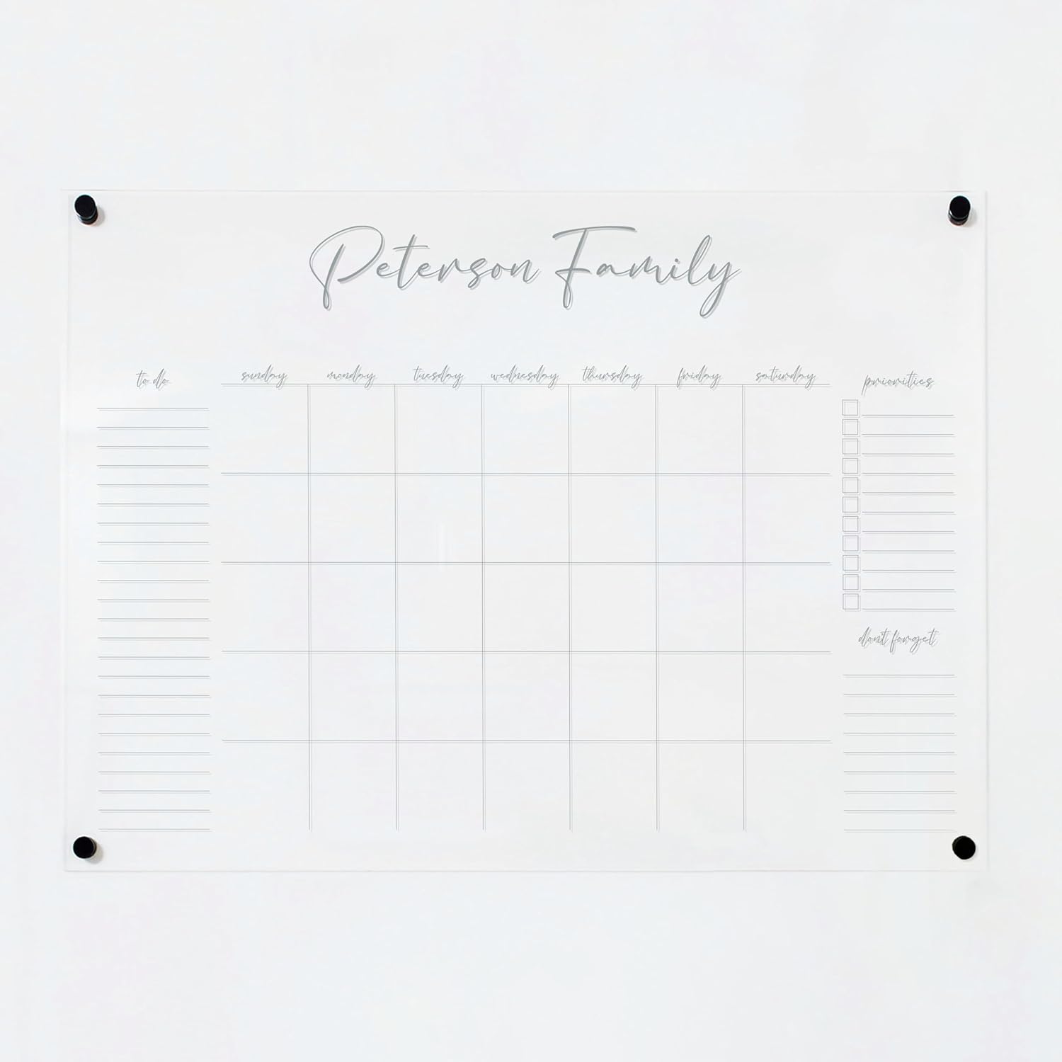 Personalized Clear Acrylic Calendar for Wall, Calendar Whiteboard for Wall, Dry Erase Wall Calendar, Wall Calendar Organizer System for Home (Cursive, Grey, 31"W x 23"H)