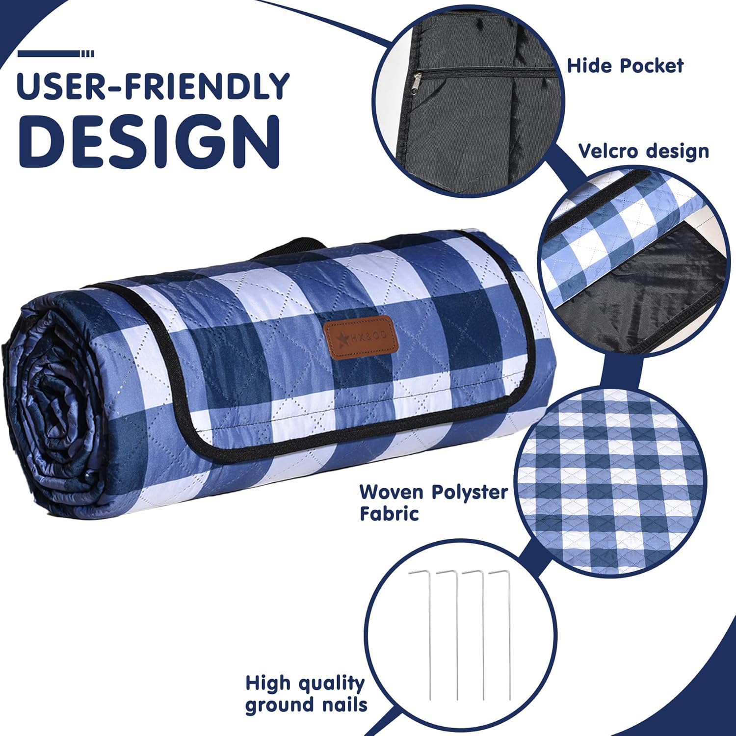 - EASY TO STORE AND USE: Adopting a Velcro design, there is no need for complex bundling and storage. The picnic mat also comes with four ground studs for use in windy environments, and the picnic blanket also has a hidden nail storage bag. The storage bag after removing the ground nail can also be used to store valuable items such as mobile phones, wallets, watches, etc., to prevent them from being lost when you leave the picnic mat to play.
