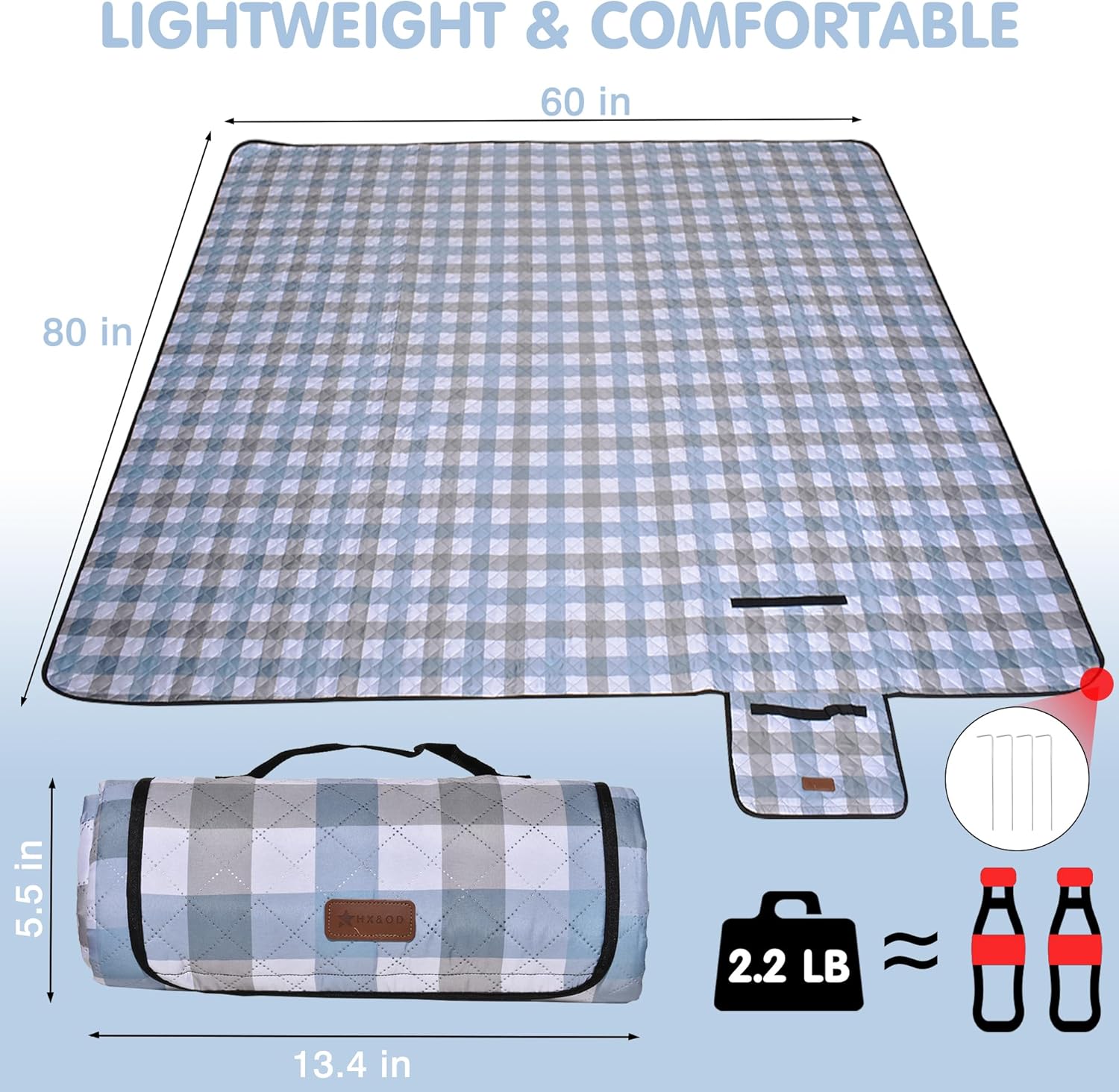 - WATERPROOF, DIRT-PROOF, SAND-PROOF, WIND-PROOF, EASY TO CLEAN: The picnic mat has 2 waterproof layers on the top and bottom, which can effectively waterproof and dirt-proof, spills, drinks, sauces, sand and gravel can be cleaned up by just gently wiping and shaking. The external ground spike fixing position can play a windproof effect. And can be washed in a washing machine or manually