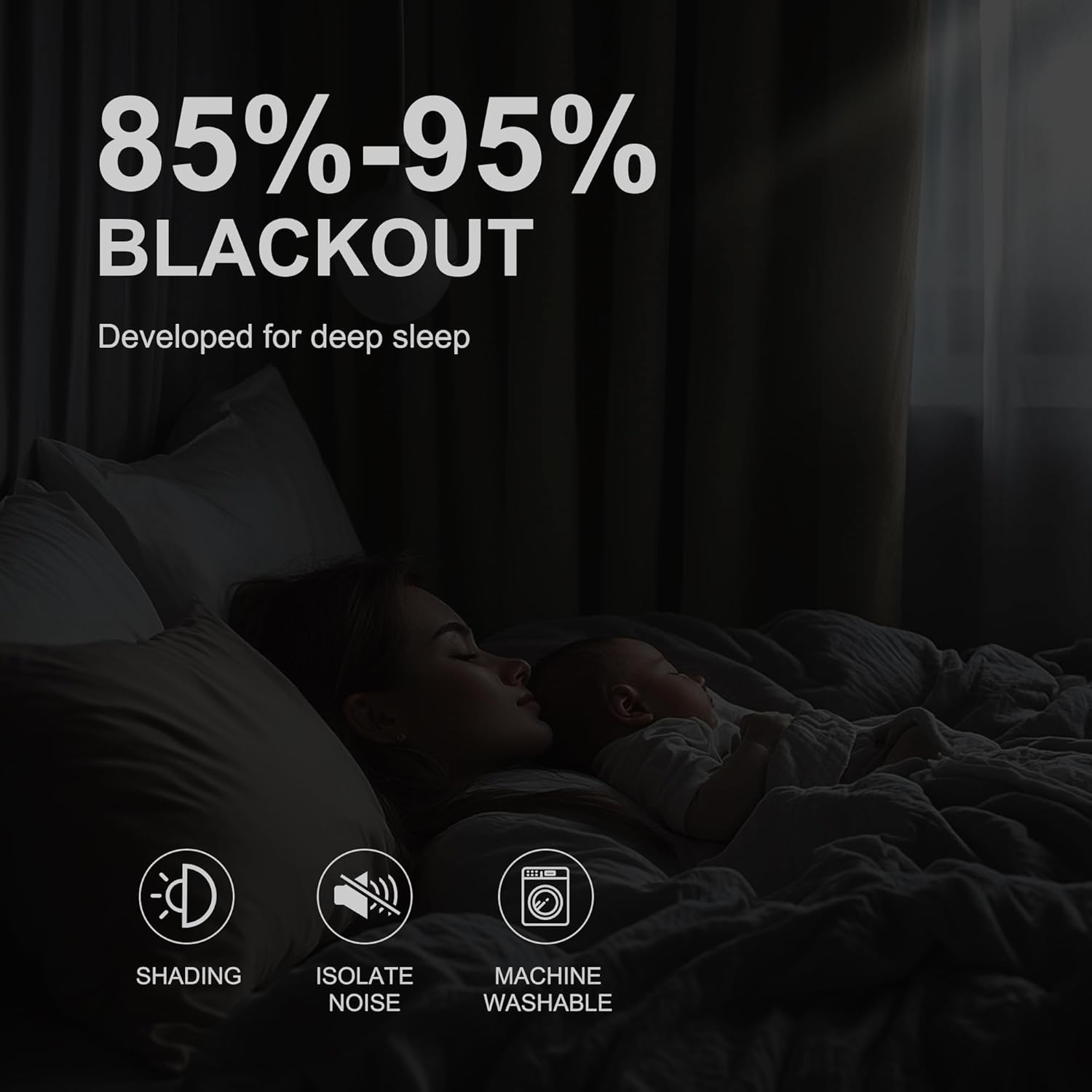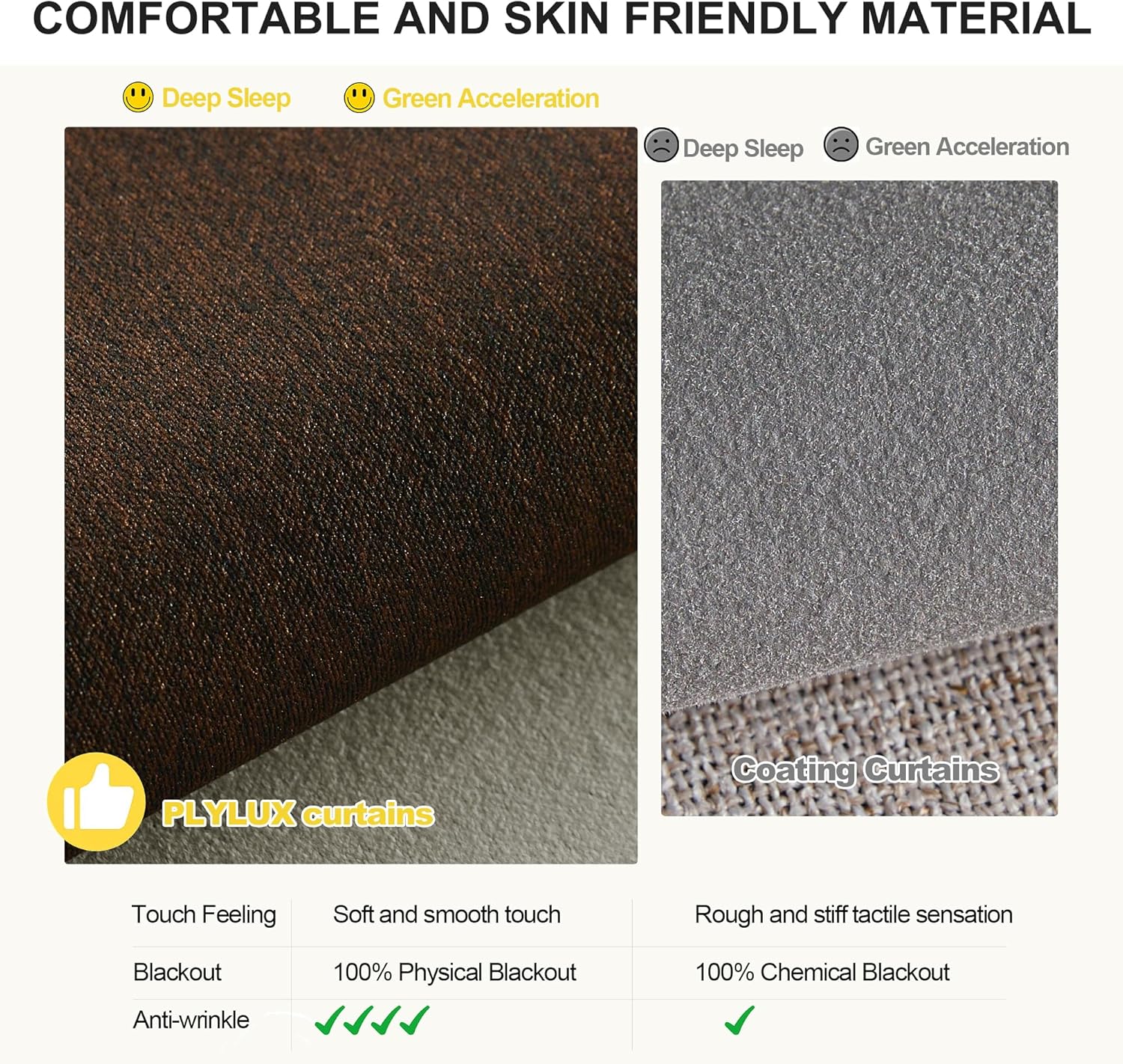 - ROOM DARKENING: These curtains are manufactured in a STANDARD 100 certified by the OEKO TEX factory. The curtains made by black gold bottom covering technology. Non-coated, Non-chemical, which can block out 85%-95% bright sunlight and UV ray, bring you a full room darkening environment for good night sleep, afternoon nap and weekend lie-ins.