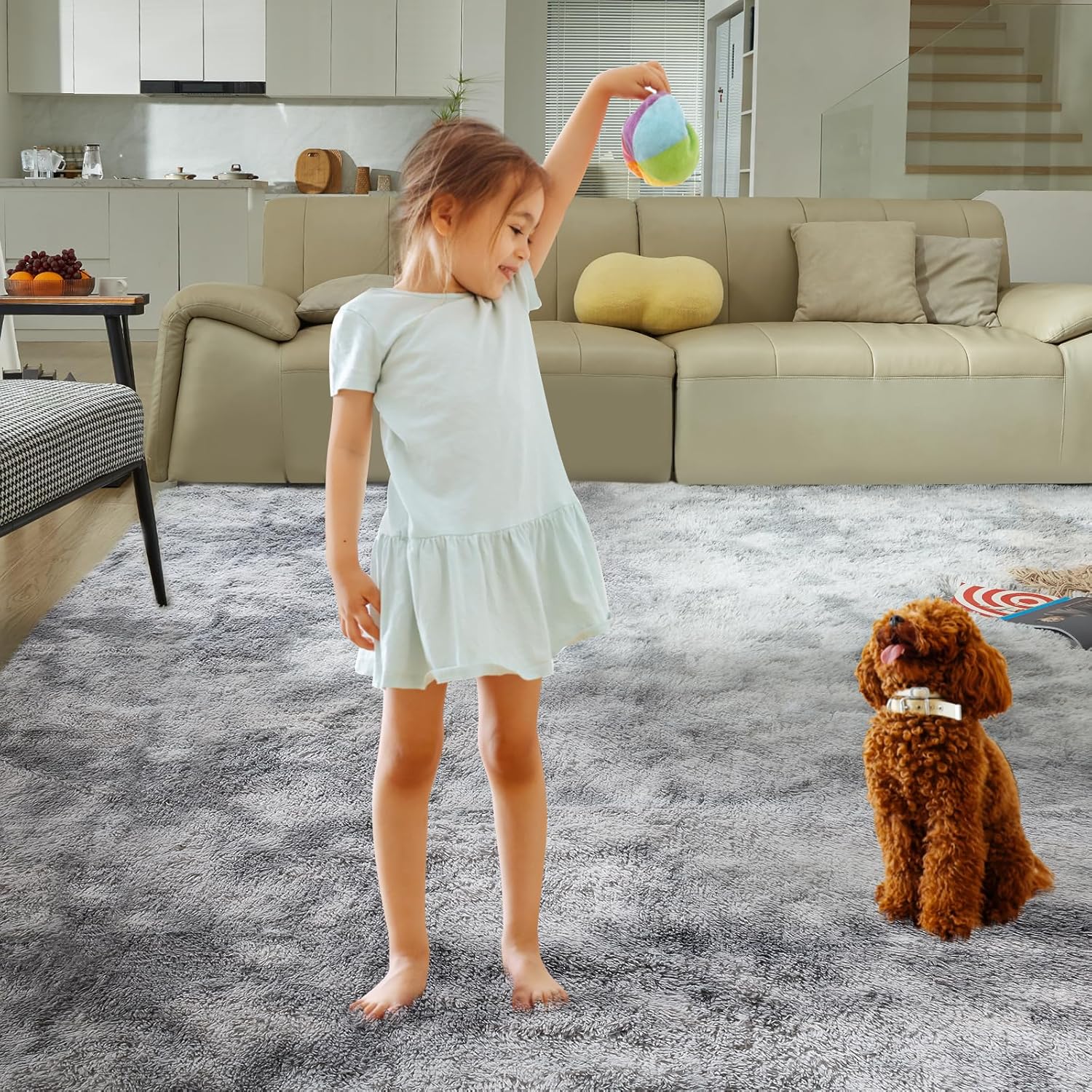 Ultra Soft Rug for Living Room, 8X10 Tie-Dyed Light Grey Fluffy Shag Area Rug for Bedroom, Modern Shaggy Carpets Fuzzy Rug for Teens Dorm Nursery Home Decor Aesthetic, Upgrade Anti-Skid Durable