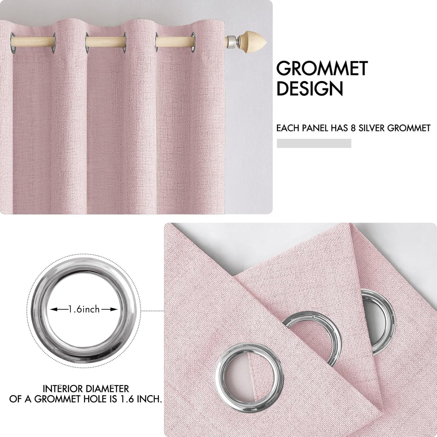 MIULEE Linen Texture 90 Inches Curtains for Bedroom 100% Blackout Thermal Insulated Pink Curtains Grommet Room Darkening Curtains/Draperies for Living Room Nursery 52x90 Inch (2 Panels)