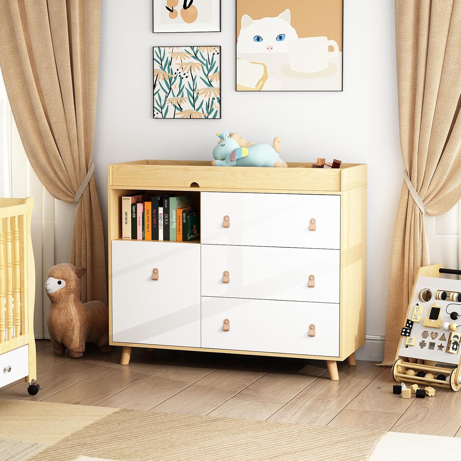 - Simple & Elegance: This white baby changing table dresser effortlessly complements any color scheme and tones in most houses. The smooth and silent drawer slides allow you to quietly and smoothly pull out the drawers even while your baby is sleeping. The raised feet make cleaning a breeze and also allow for easy access for vacuuming or robot cleaners.