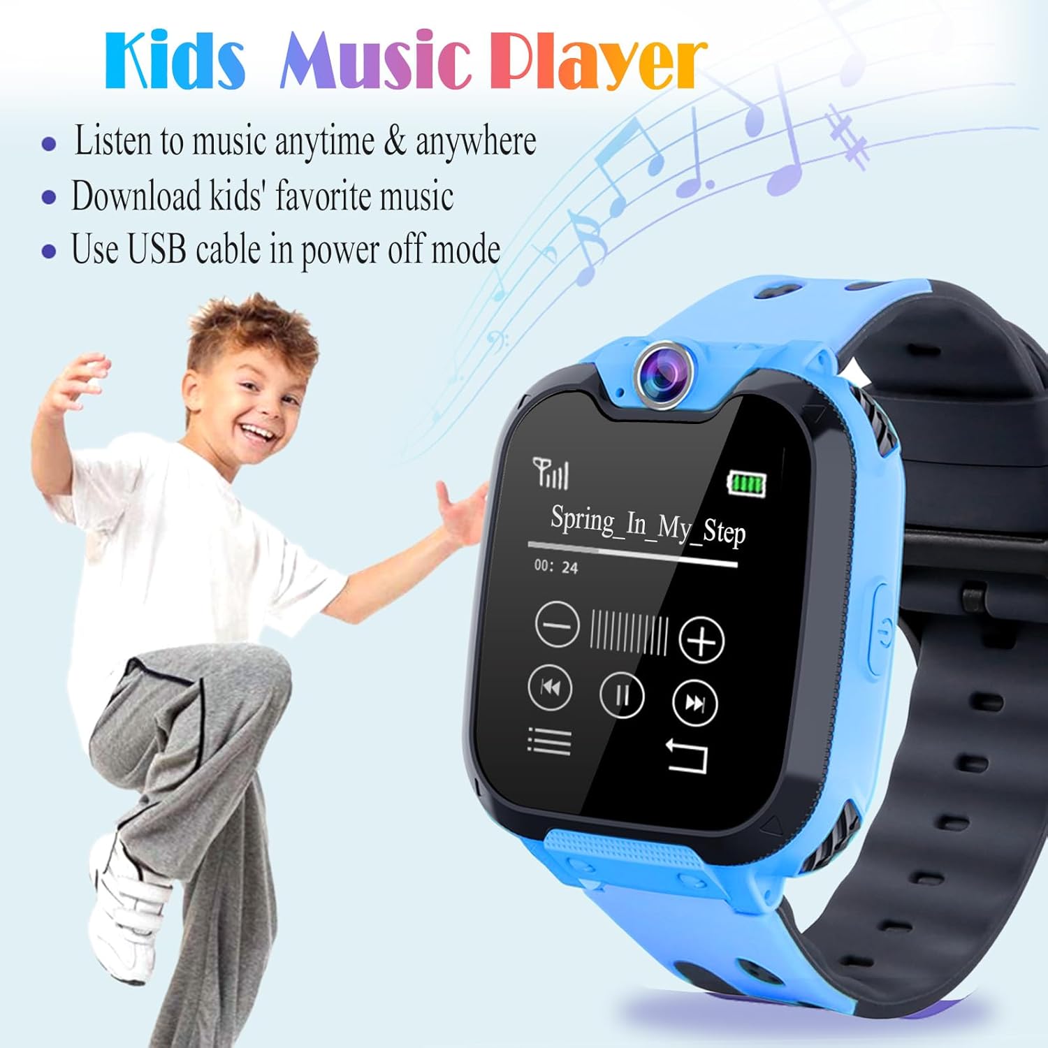 Goodatech Smart Watch for Kids Boys Girls Learning Toys with 16 Games Phone Call SOS, Camera Voice Music Player Recorder Alarm Clock,4-12 Years Birthday (Blue)