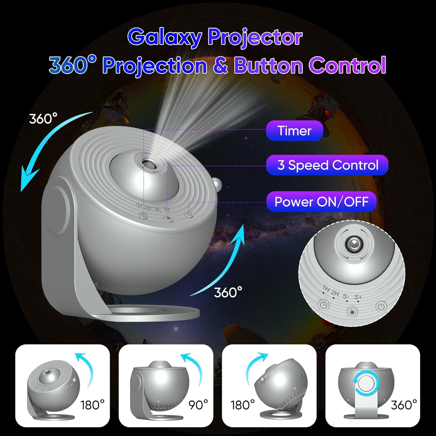 - Star Projector Lifelike Projection – Our projector galaxy simulates the nebula’s movement speed, delivering a clear, lifelike projection of the starry sky. Perfect as a galaxy star projector for kids and adults, it brings the wonders of the universe to your ceiling. Fine-tune the focus and use the timer function to create an immersive experience, ideal for bedroom room decor. Experience the vastness of outer space from the comfort of your own home with this galaxy projector for bedroom adults